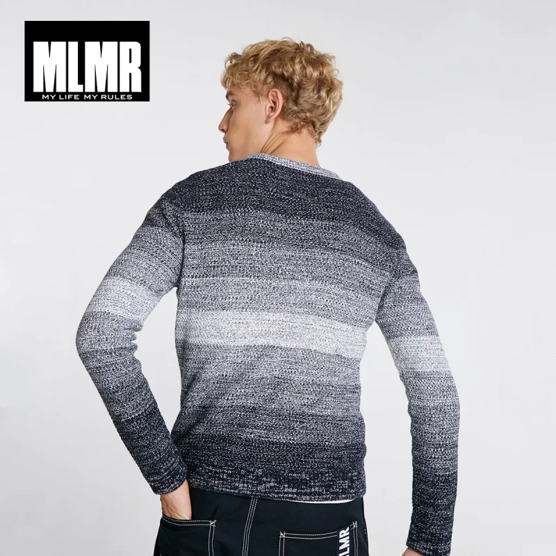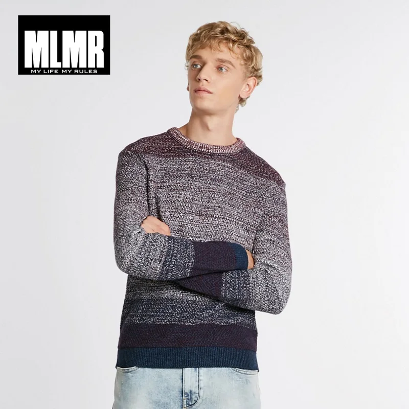 JackJones осенний мужской модный трендовый хлопковый свитер с круглым вырезом и градиентной полоской 218324552