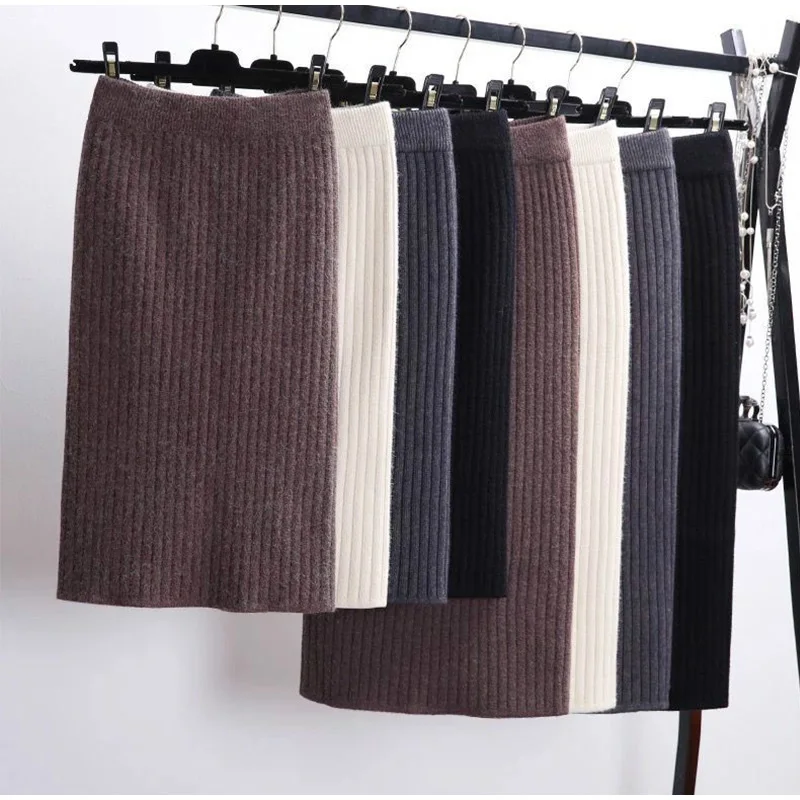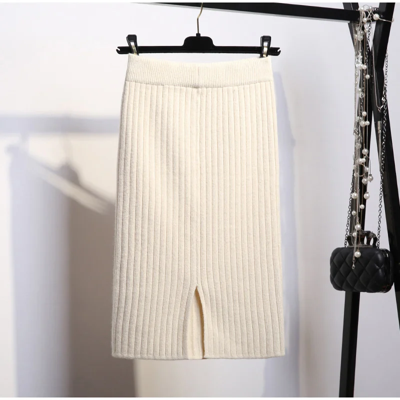 Женская облегающая вязаная юбка-карандаш, белая элегантная вязаная юбка-карандаш средней длины с высокой талией на осень и зиму, 2019