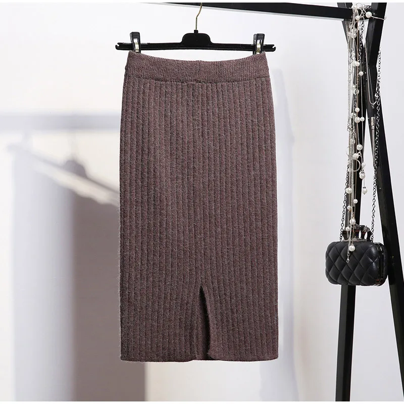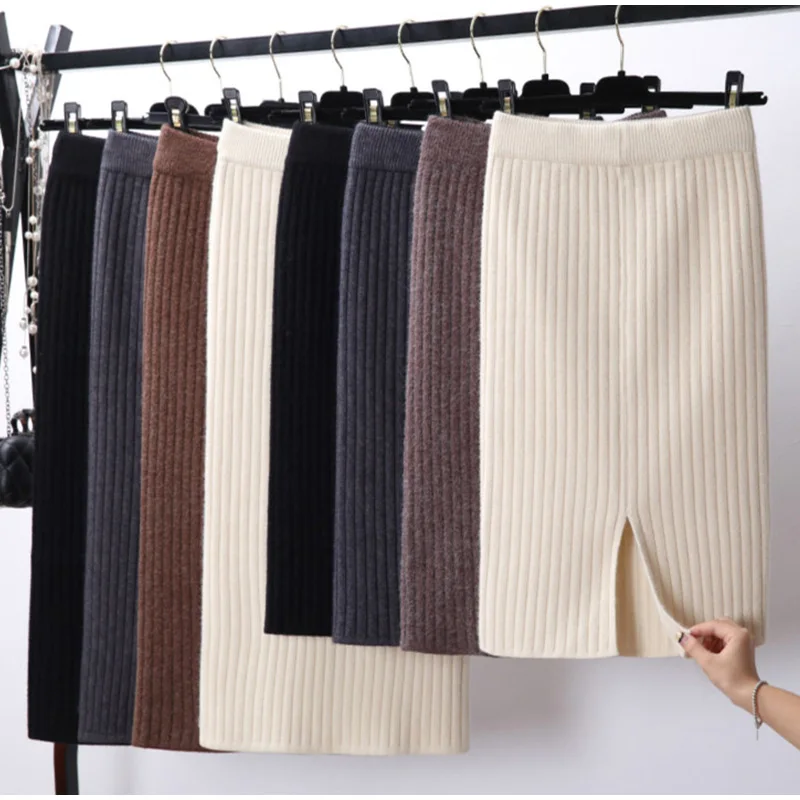 Женская трикотажная юбка, однотонная длинная юбка, Осень-зима, 2021