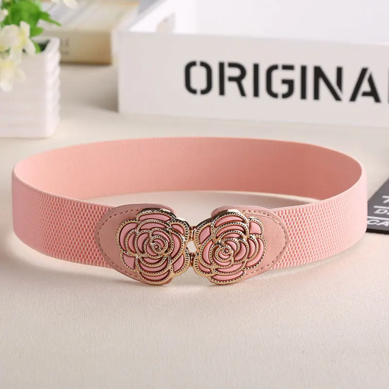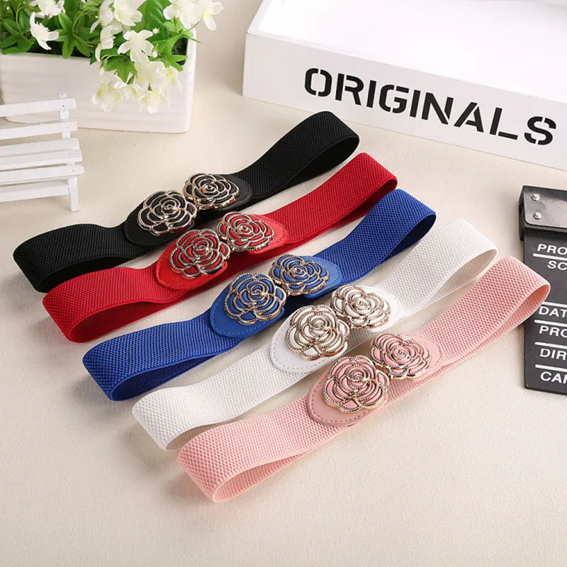 Женский широкий пояс из эластичного материала, тянущийся эластичный широкий корсет, пояс с цветочной пряжкой, 2019