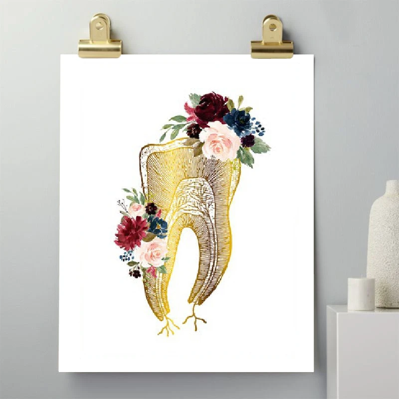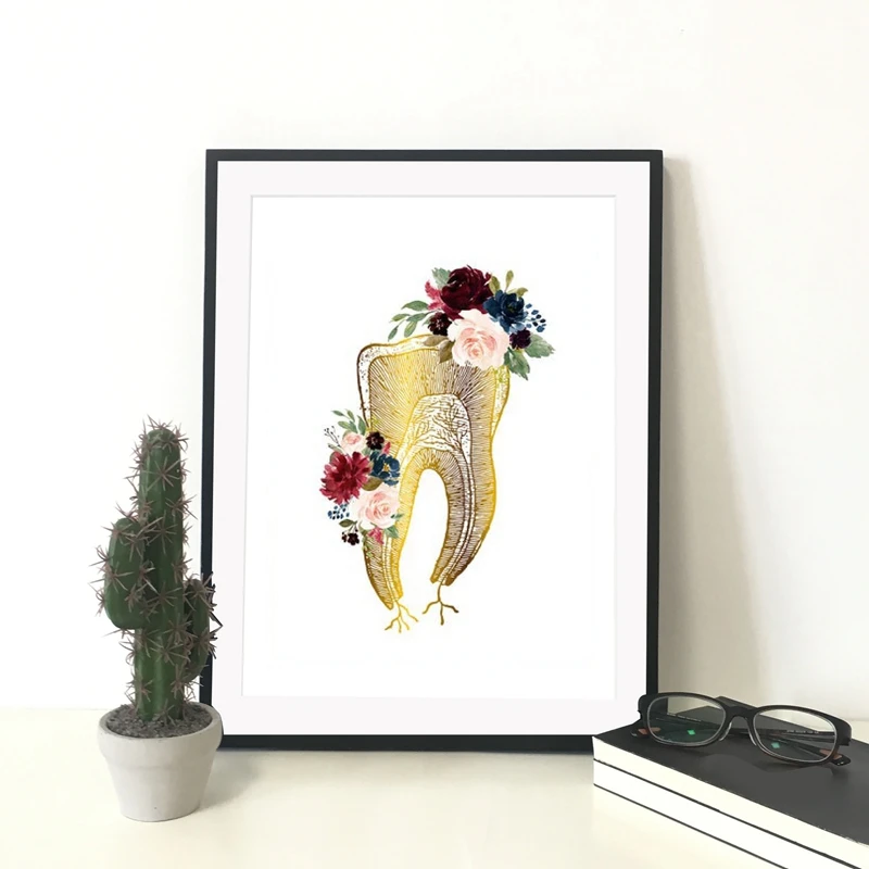 Художественная Картина на холсте с изображением зубов человека, Подарочный постер с изображением зубов и цветов для врачей, украшение для стен в офисе