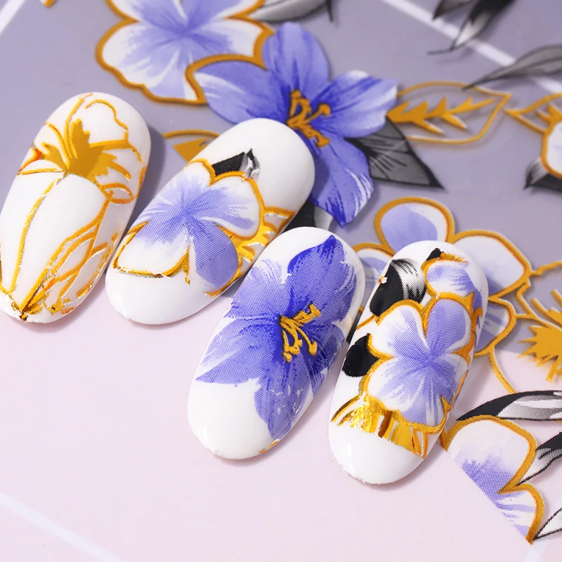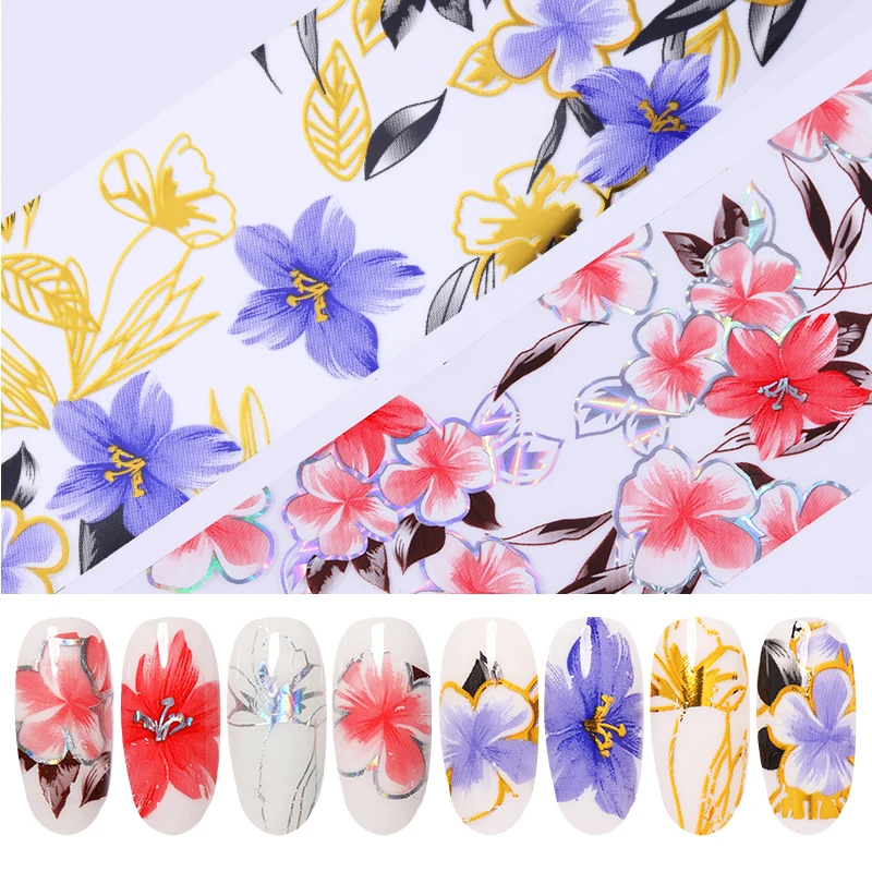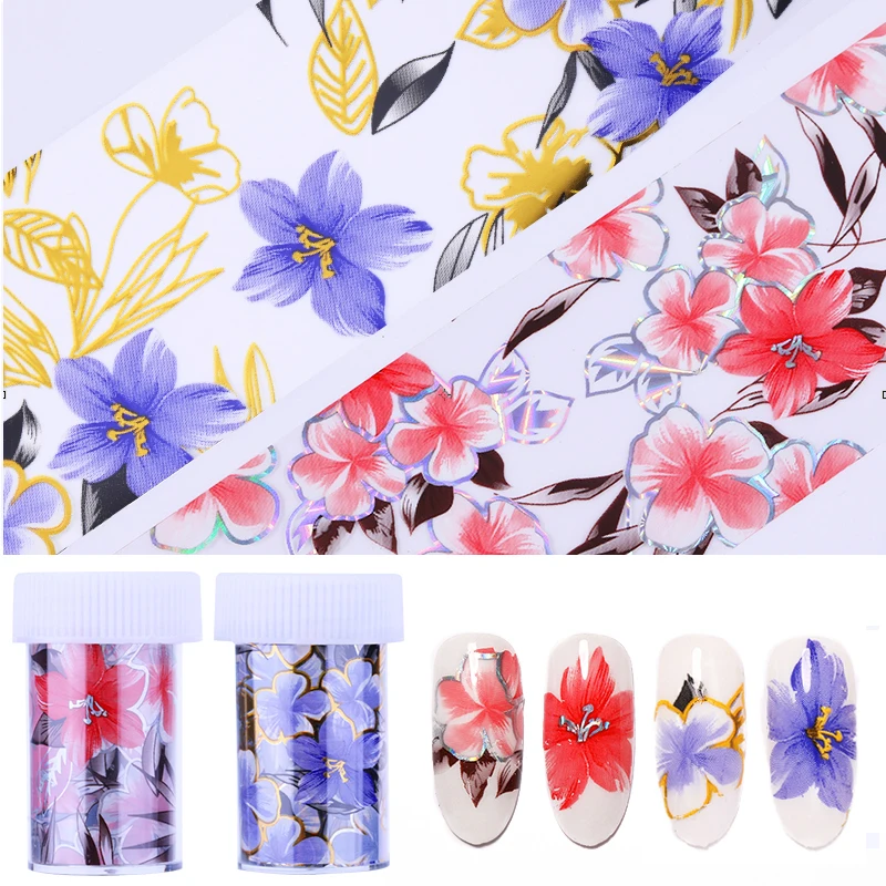 Цветные переводные наклейки с цветами для ногтей, наклейки с разноцветными узорами, дизайн ногтей, наклейки для украшения своими руками, 1 рулон