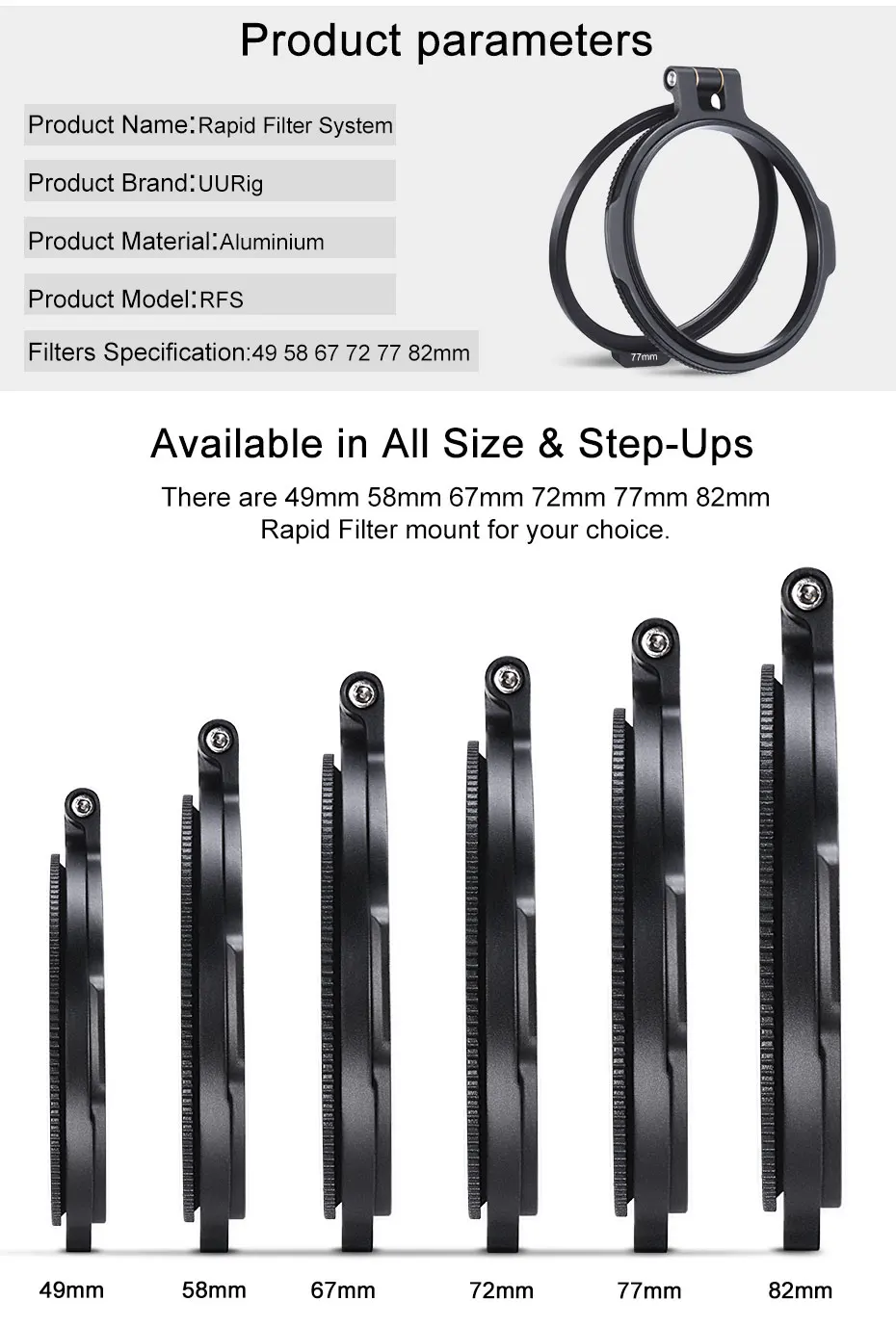 Кольцевой фильтр UURig ND, быстросъемная система фильтров RFS, кронштейн-переключатель для камер Sony, Canon, Nikon, DSLR