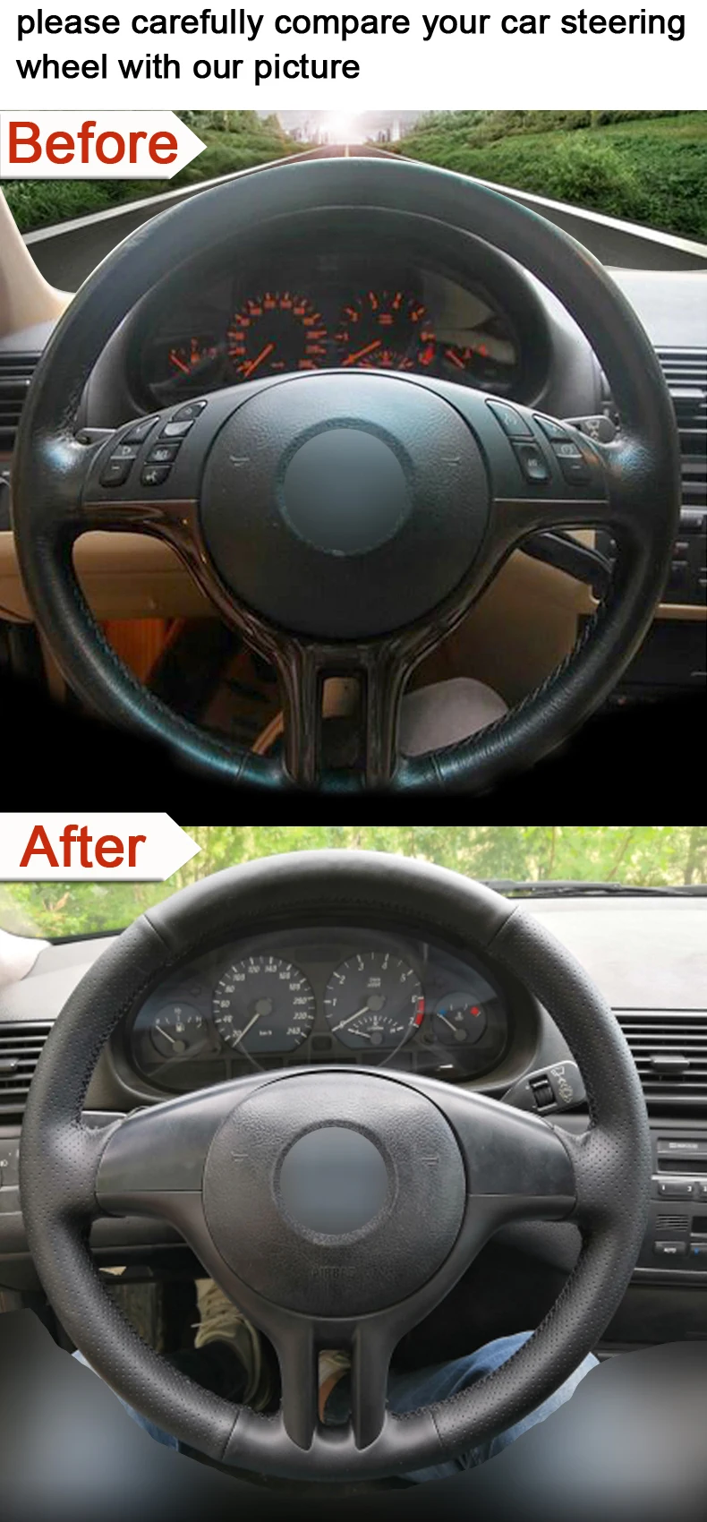 Сшитая вручную черная искусственная кожа, чехол на руль для BMW E39 E46 325i E53 X5