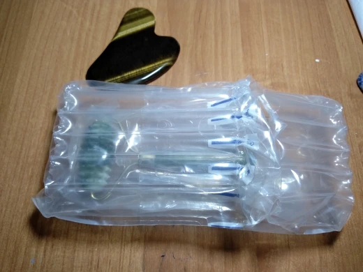 Ролик пришел быстро, буквально за 2 недели, хорошо упакован в дутую пленку. Ролик каменный, приятно тяжеленький, недостатков не заметила. Надеюсь, что чудодейственные свойства этого ролика-массажера не заставят себя ждать, и изменения на лице я скоро замечу.