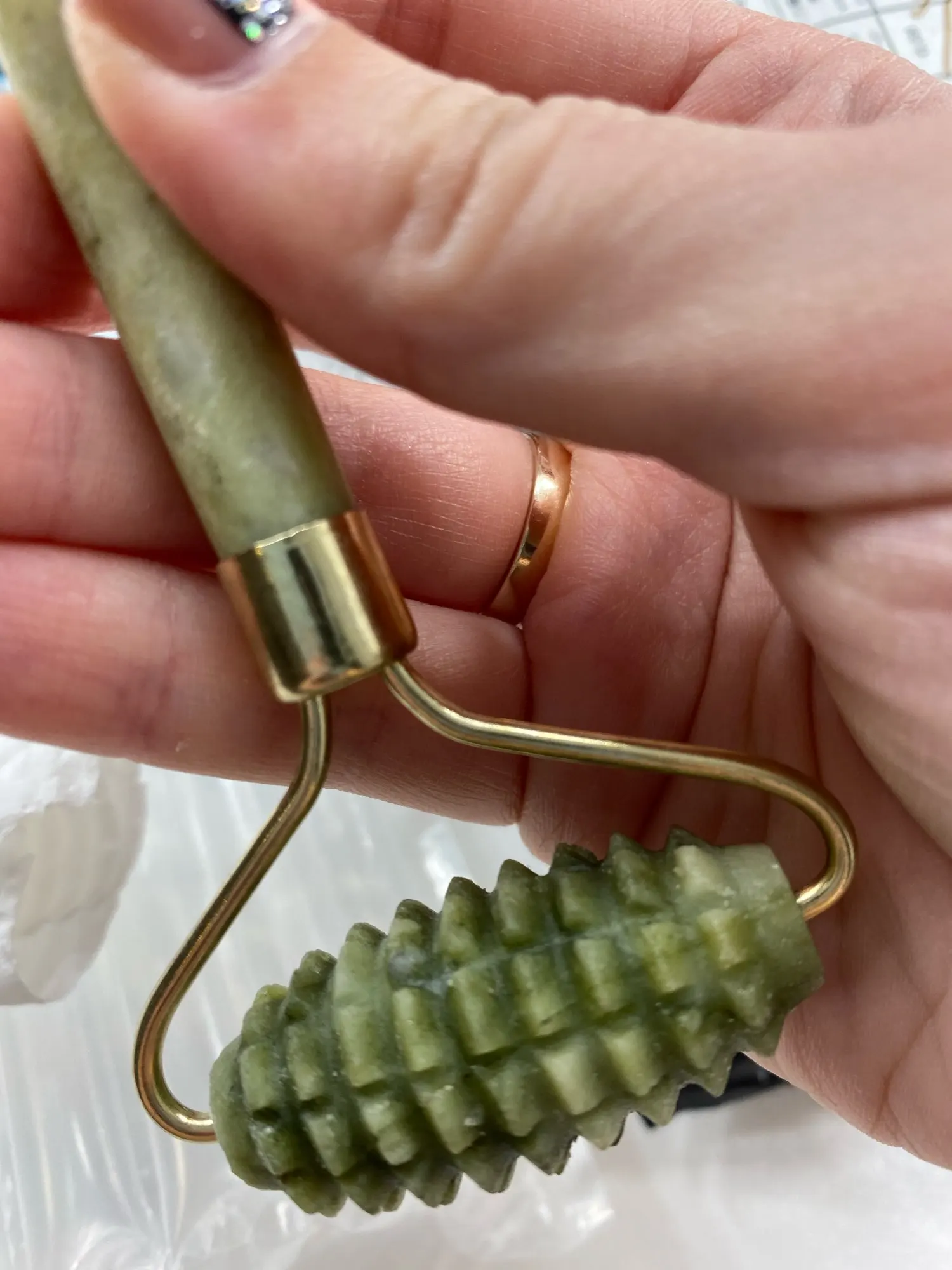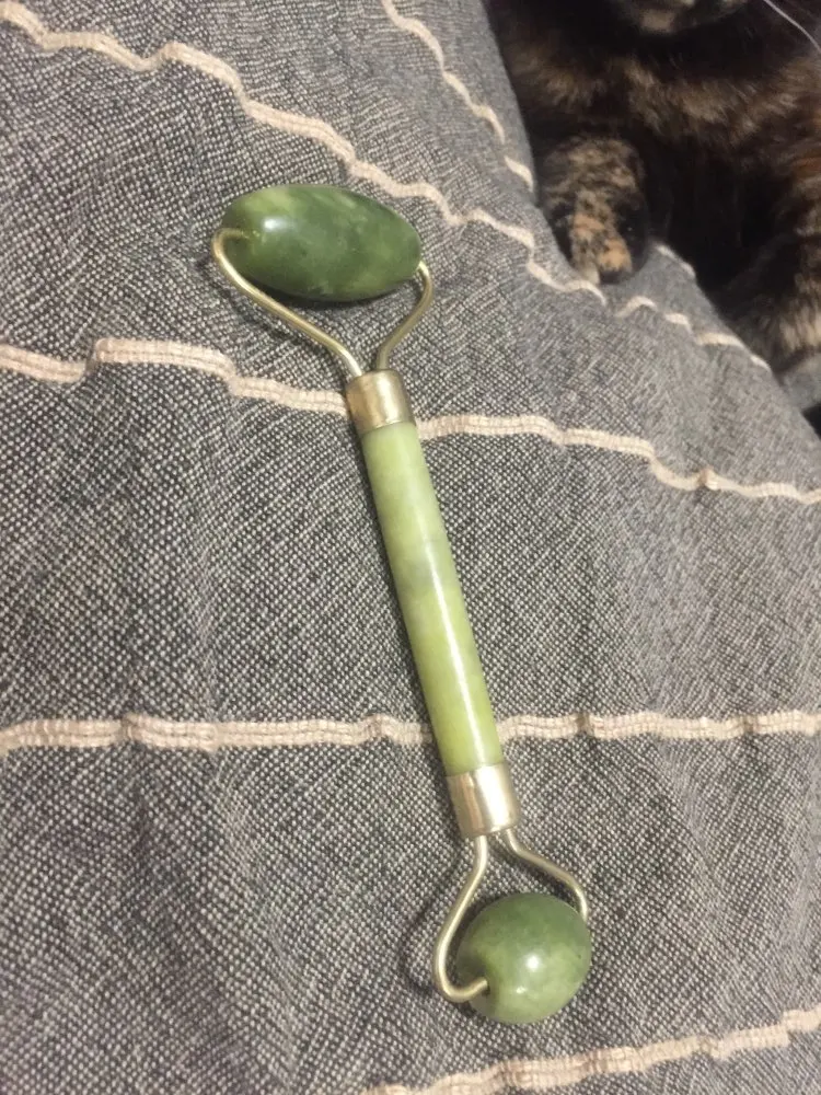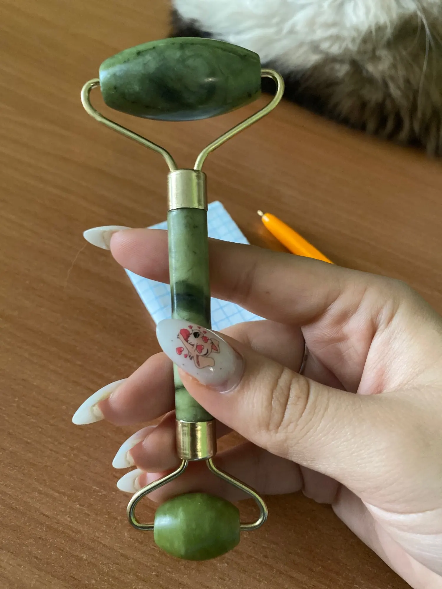 Хороший ролик, быстрая доставка, сомнение,что нефритовый, серее мраморный