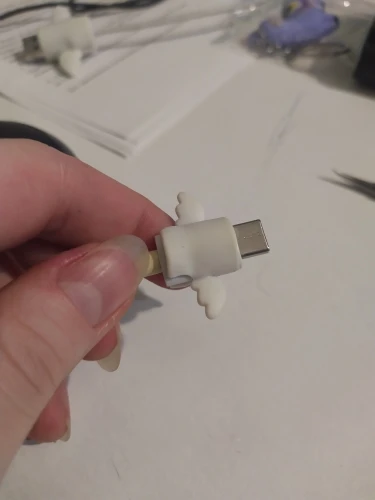 Милая штучка для зарядки. Ее правда не очень удобно надевать и приходиться достаточно сильно натягивать, но в целом все хорошо надевается. Может у тех, у кого совсем не получается, пришли с браком? Но у меня все отлично получилось
