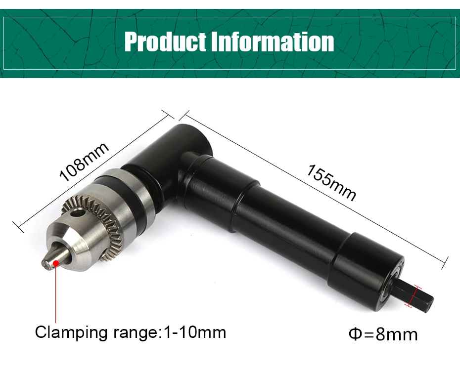 Адаптер для электродрели, угол 90 , патрон без ключа, угол наклона 0,8-10 мм