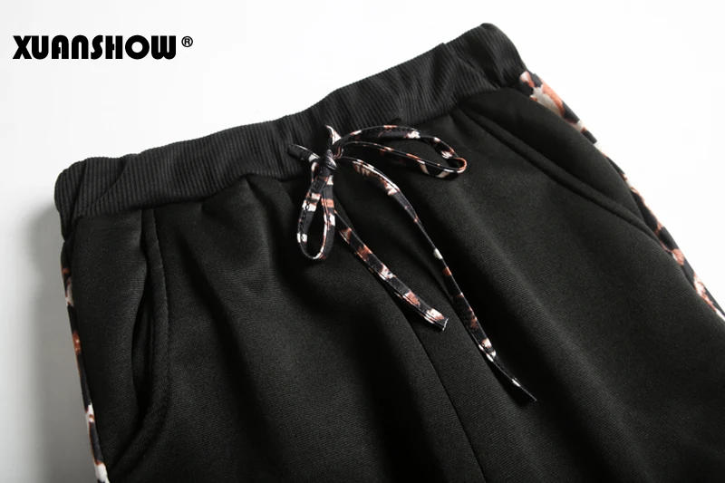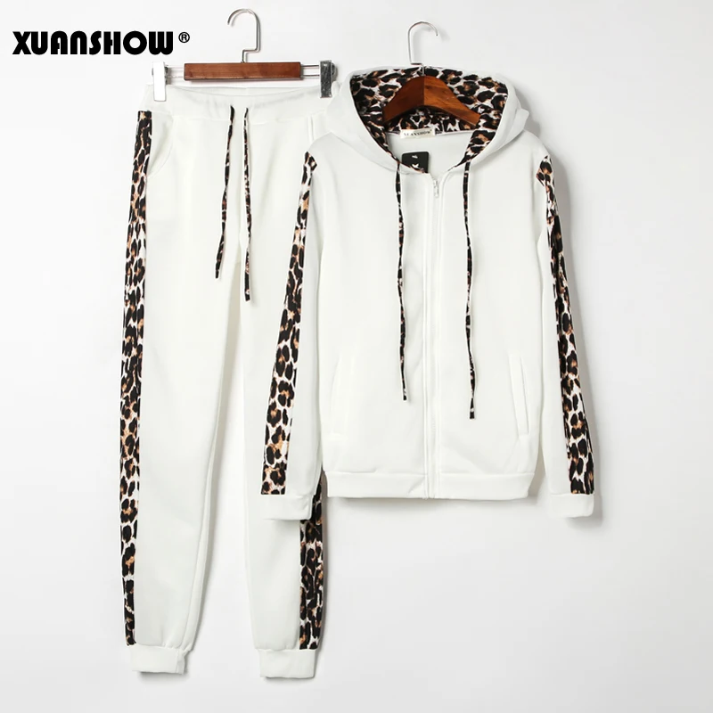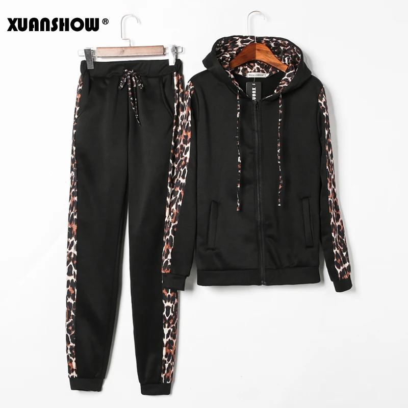 XUANSHOW осень зима Горячие продажи женщины Повседневная Спортивная одежда толстовки с длинными рукавами Подходить секси леопард пэчворк Дамы Спортивные костюмы