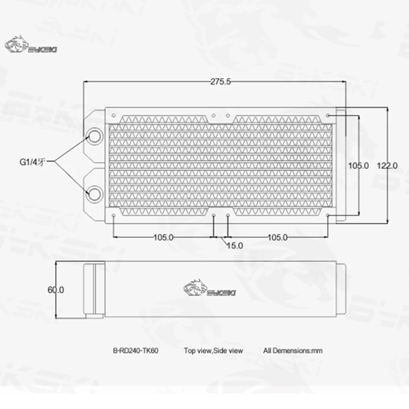 3-этажный радиатор Bykski, 60 мм, толщиной 240 мм, медный радиатор, компьютерный водяной охлаждающий жидкостный теплообменник для вентиляторов 2 х 12 см