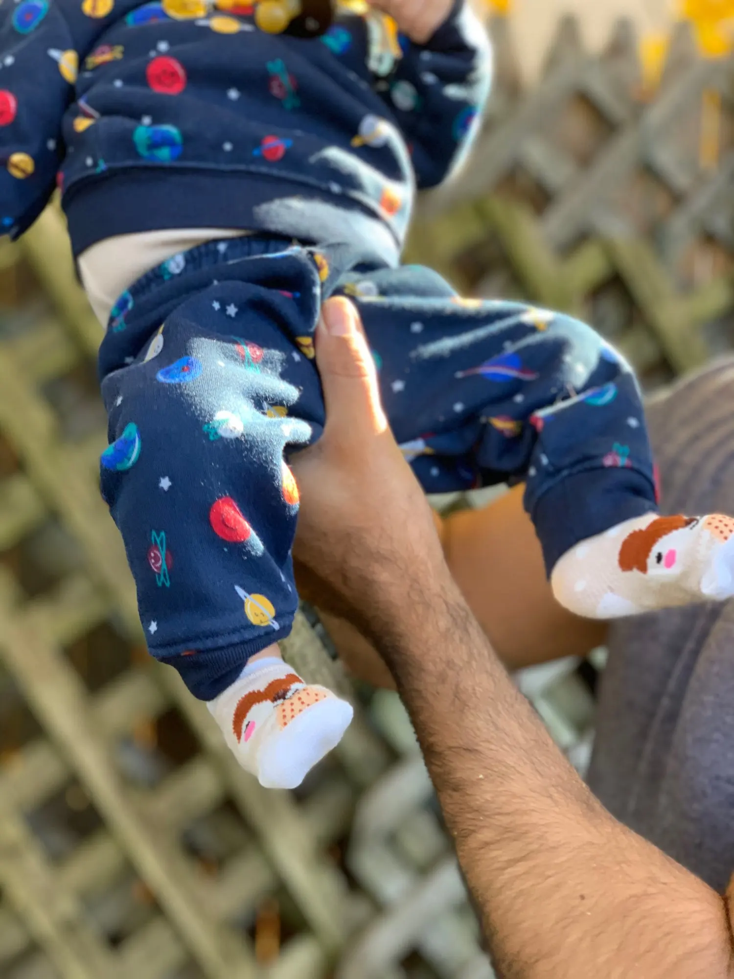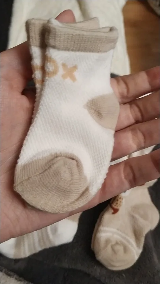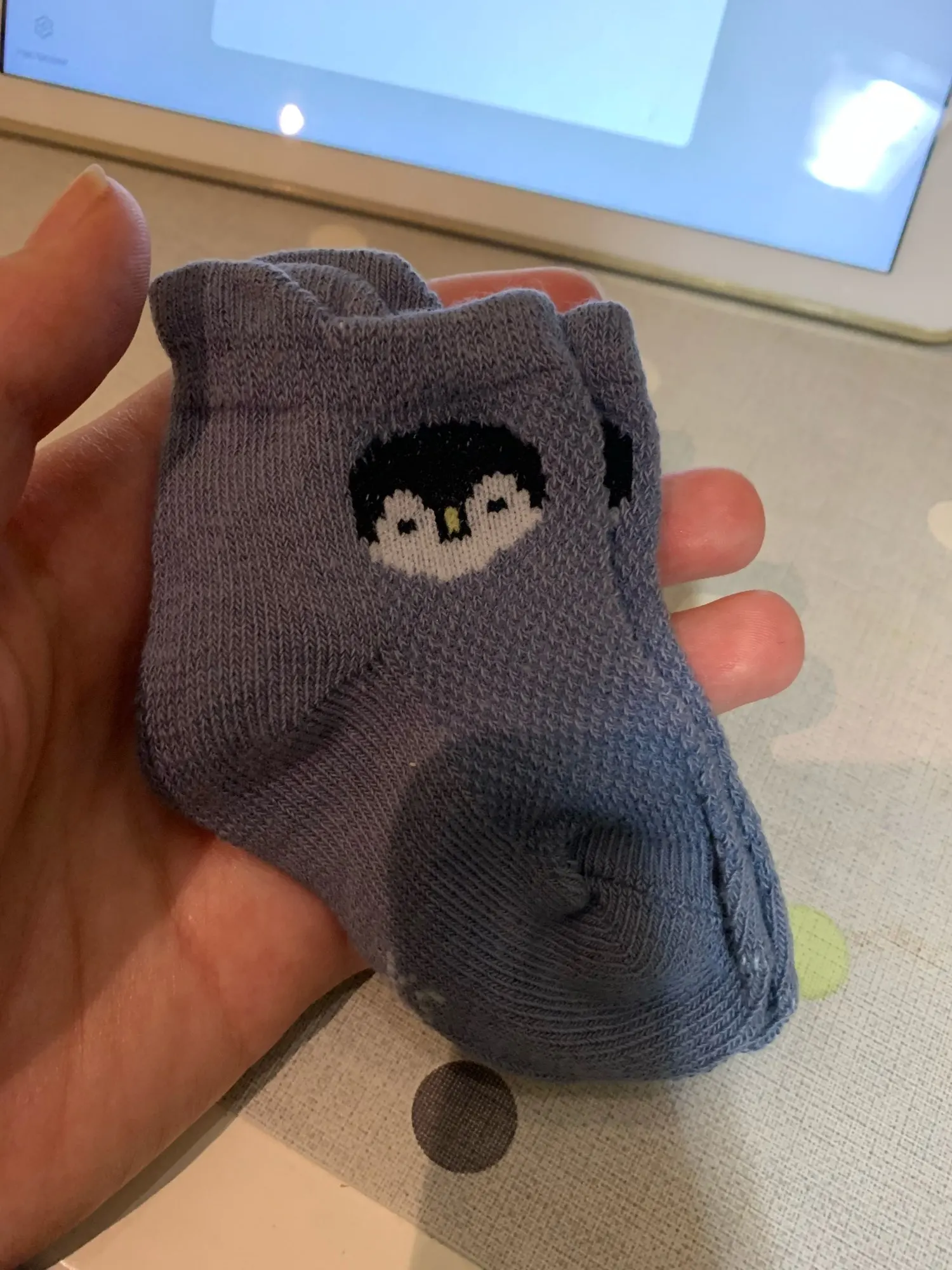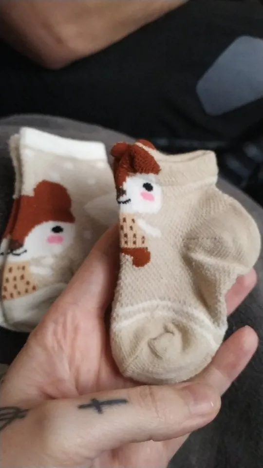Симпатичные тоненькие носочки. Не на новорожденного точно, месяца на 4-5 думаю. Не 100% хлопок, слегка «скользкие». Доставка 2 месяца