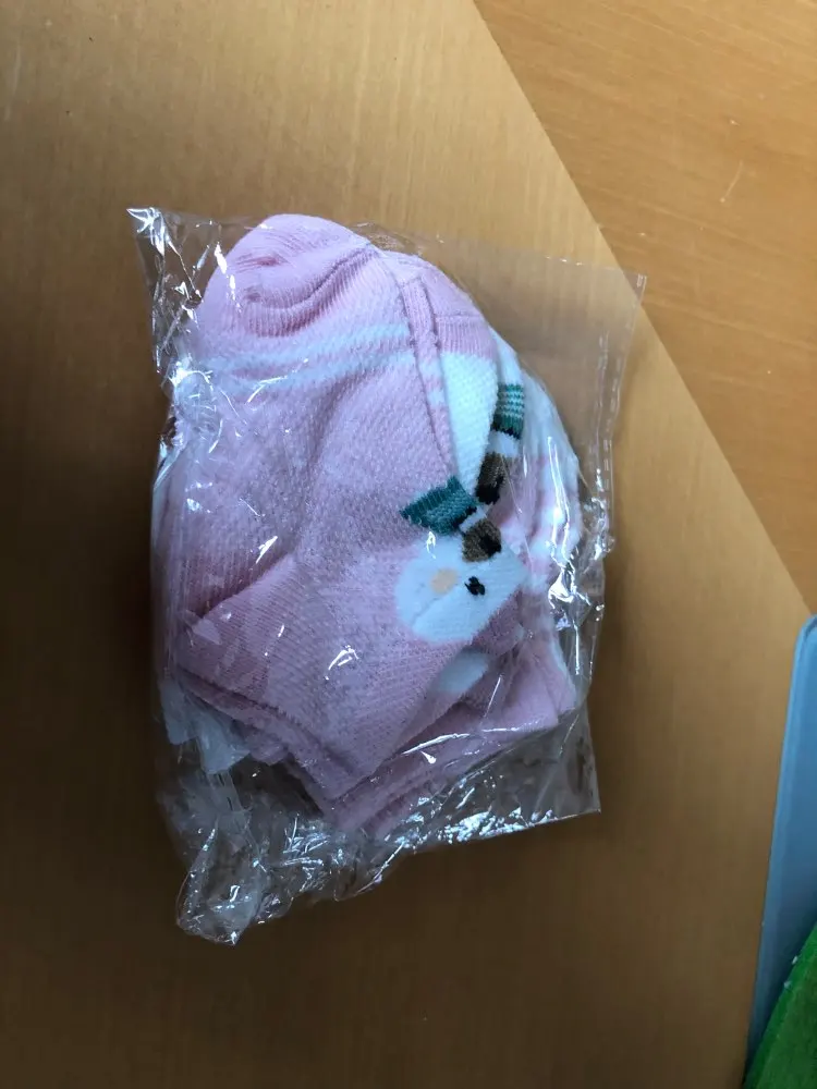 Прибыло в течение 20 дней. Соответствует описанию. Милые носки. Одна из носков имеет функцию, но она, вероятно, постирается.
