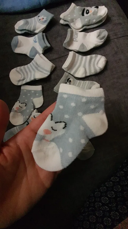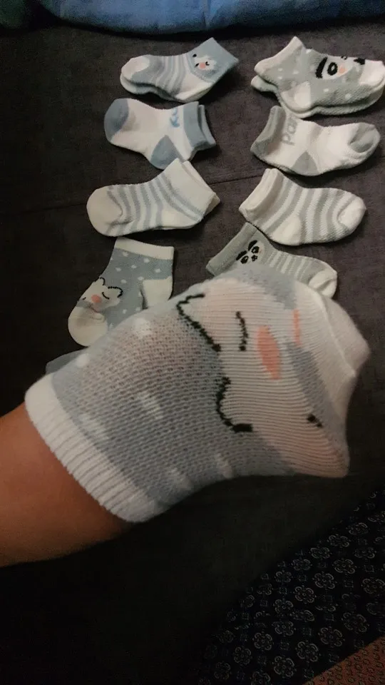 быстрая доставка,носочки тоненькие. Ребенку 2 мес(8-9см стопп) большеваты,но не критично (и резиночки не давят) Под ползунки будет хорошо ,или на лето)