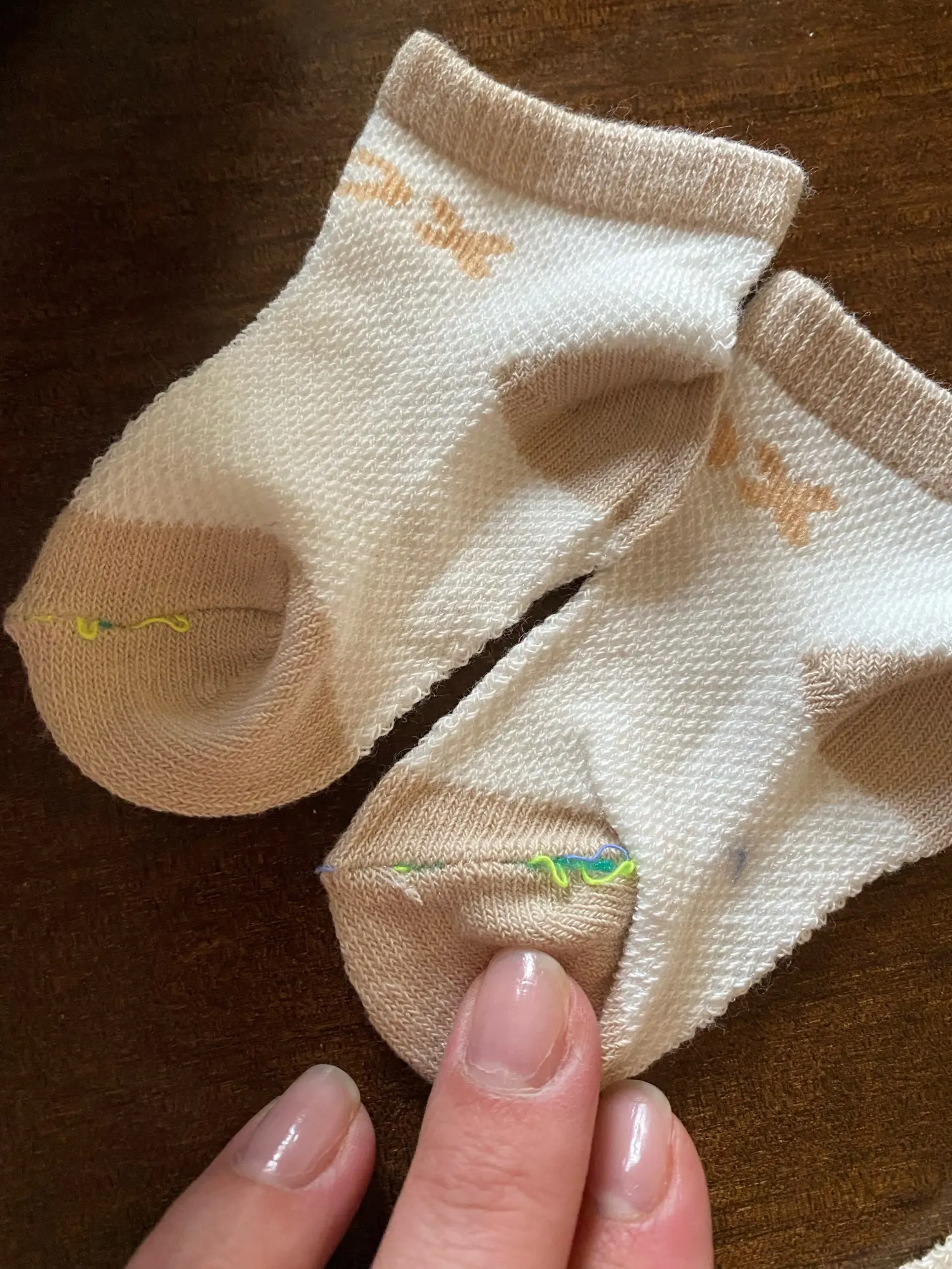 Очень хорошие носочки доя малыша, не плотные, больше как даже супер дышащие летние. На фото вот видно сравнение с обычным носком.