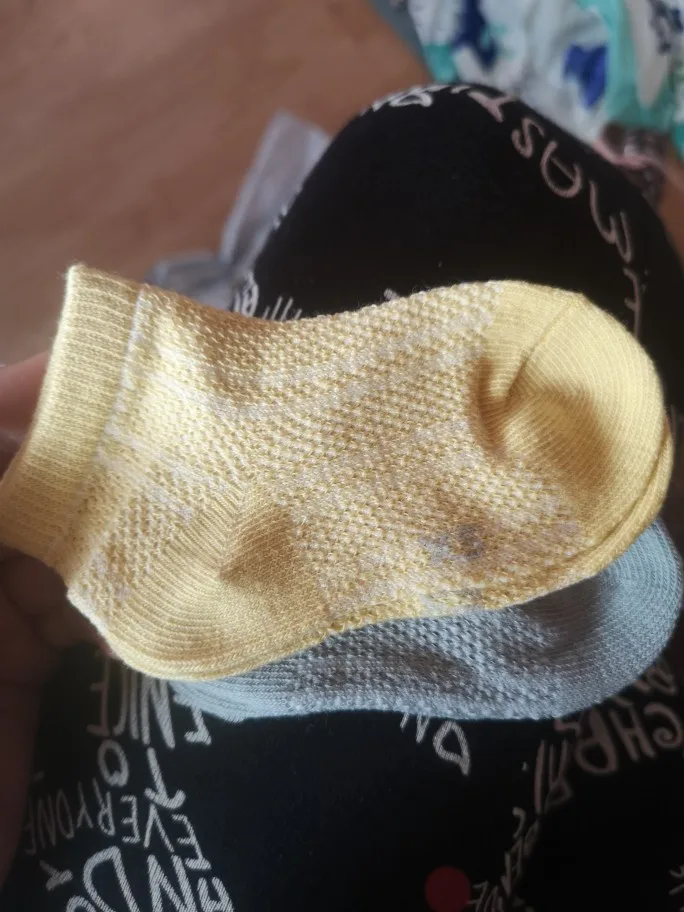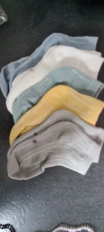 Заказ пришёл быстро. Материал указан хлопок, но есть сомнения. Внутри нитки. На некоторых носках нитки есть снаружи - см фото. Не линяют. Тонкие и хорошо тянутся. Но пухлую ножку резинка пережимает. После 3х стирок скатались