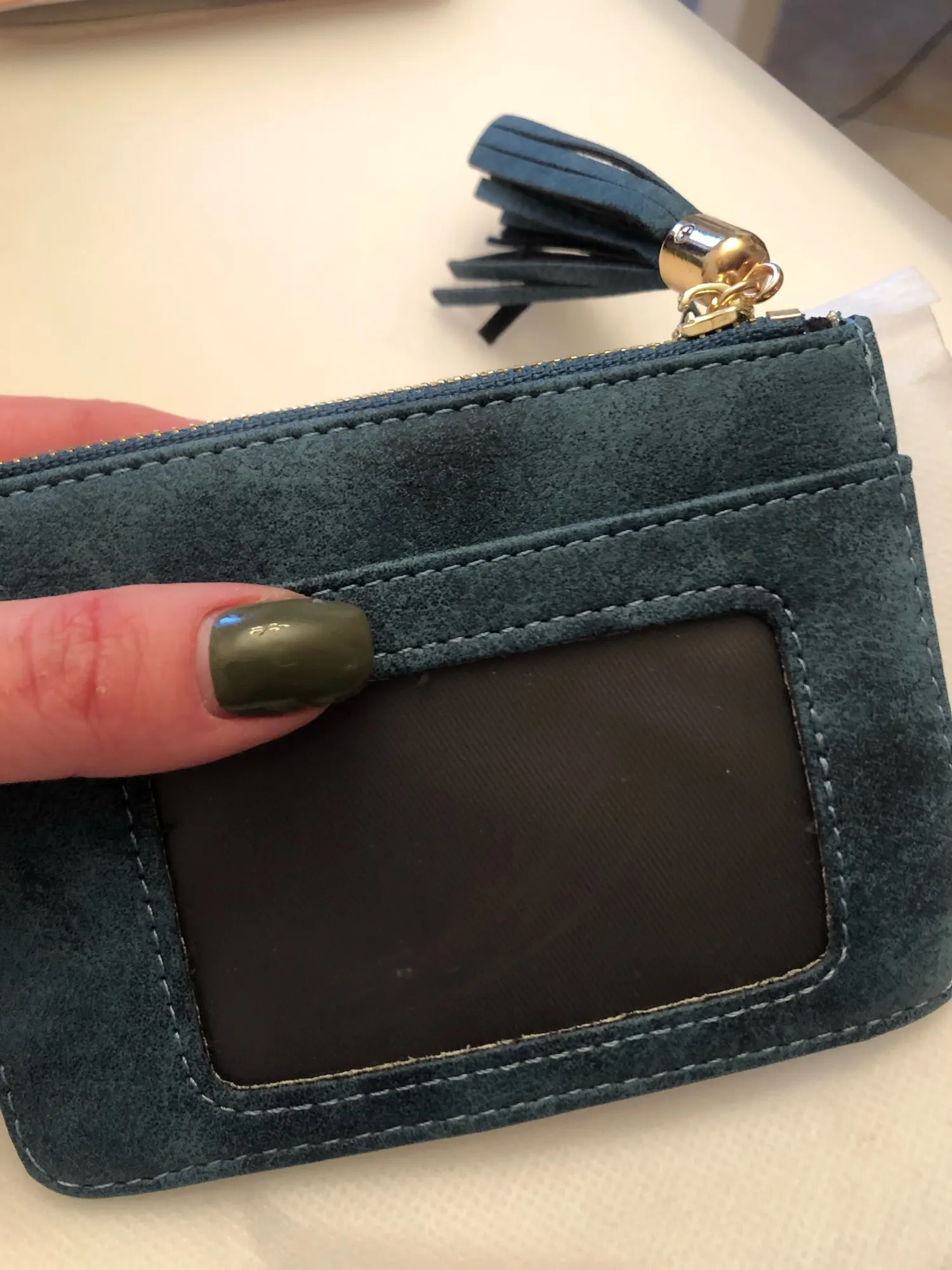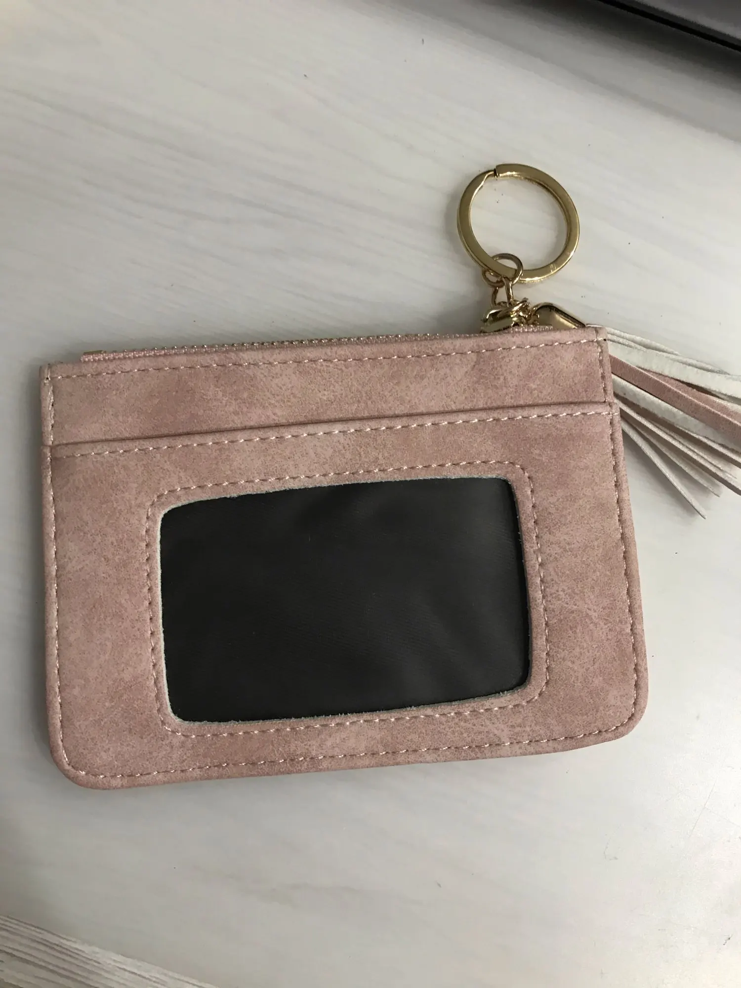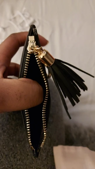 Monedero pequeño ideal para bolsos pequeños con un solo bolsillo para tarjetas. Color más oscuro que en la foto. La unica pega la cremallera que se atasca.