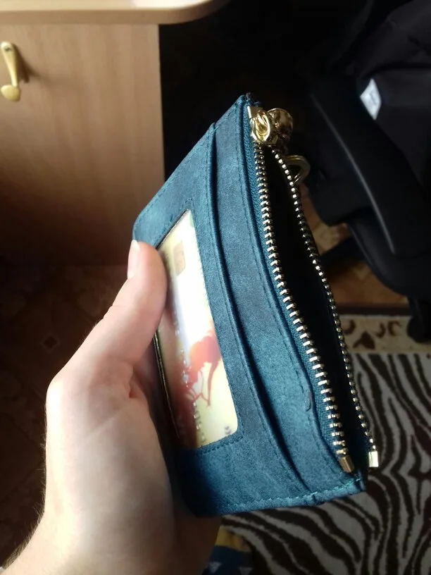 Хорошенький кошелёк. Но не тот цвет. Заказывала изумрудный , пришел синий, ну да ладно и синий красивый. Доставка довольно быстрая. В кошель поместились 4 карточки, мелочь , и мои скомканые 150рублёв. Замок работает хорошо, металл, чувствую как зимой обдеру руки хаха) Короче хорош, рекомендую )