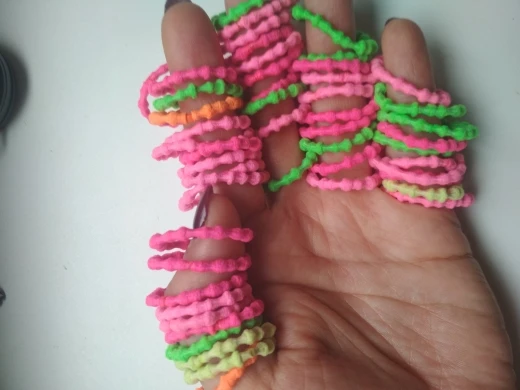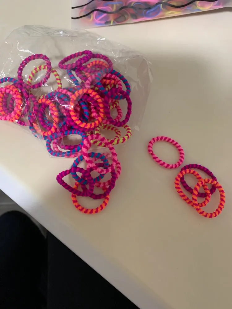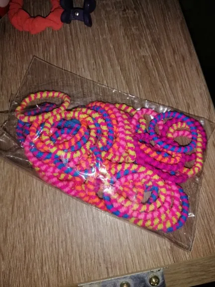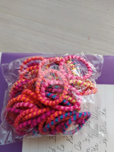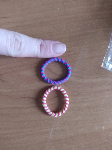 Резинки оказались меньше, чем я предполагала. Но они идеально подходят для детей, потому что можно намотать резинки на волос всего на два раза)