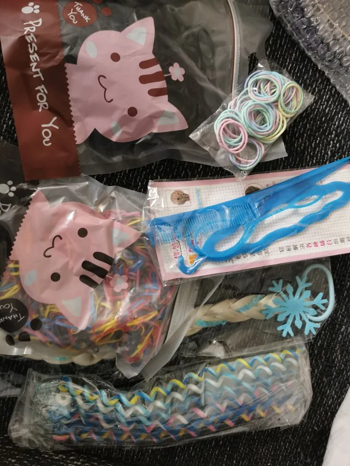Очень долго ехал заказ, 78 дней. Но всё хорошо. Резиночки, заколочки очень красивые! Спасибо продавцу.