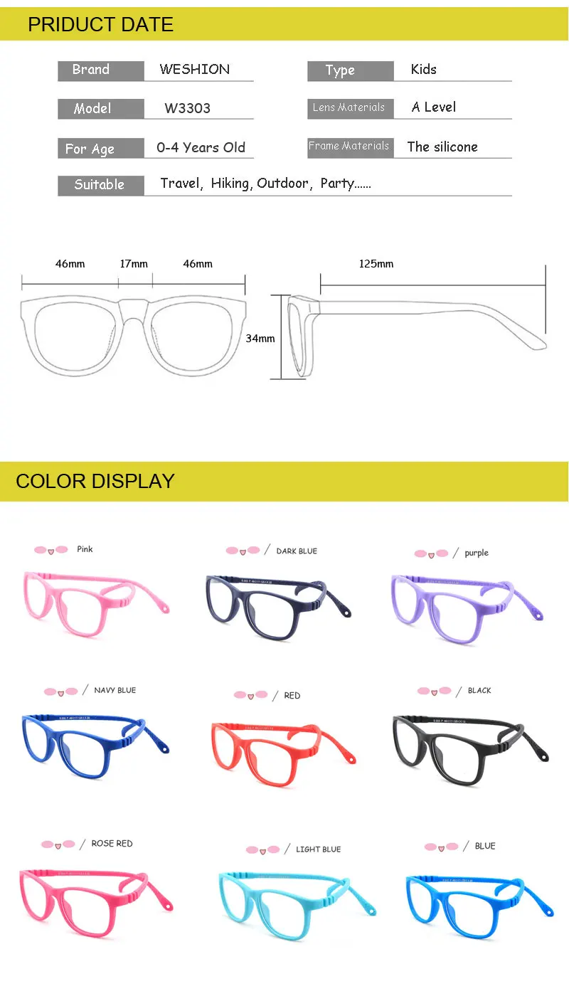 Детские очки для мальчиков и девочек 1-3 года, оптические силиконовые фотообъективы, корректирующие оптические линзы UV00