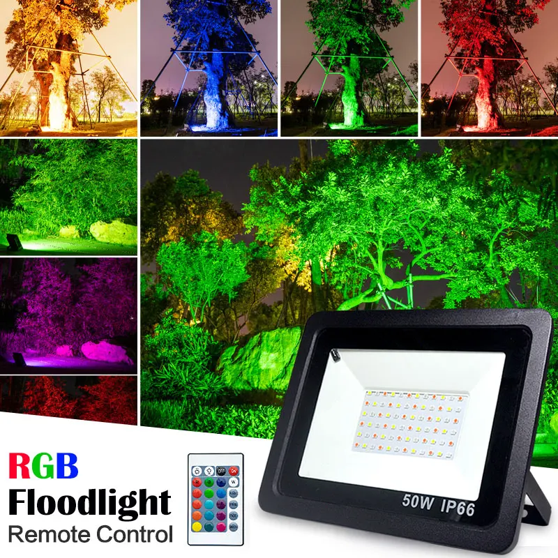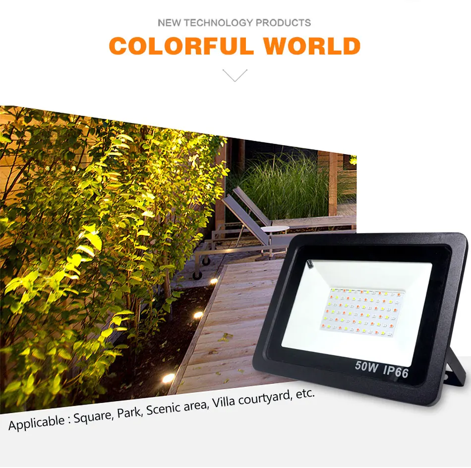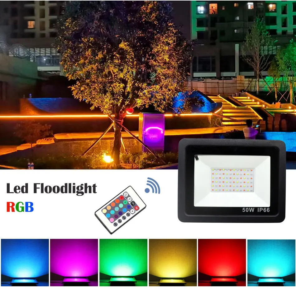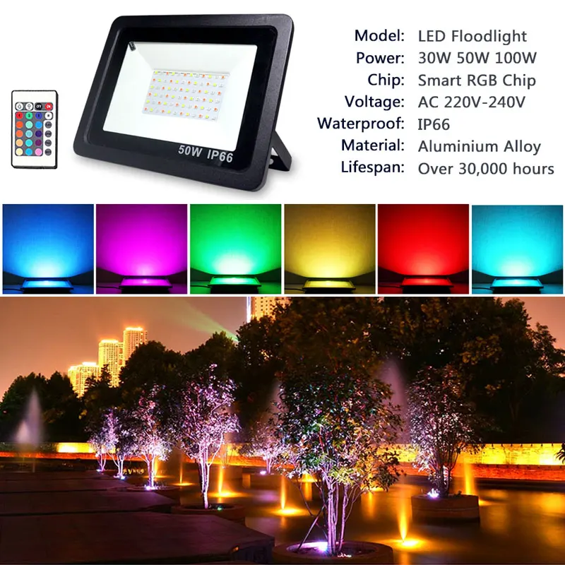 RGB LED прожектор водонепроницаемый 100 Вт 50 Вт 220 в 230 В красочный пульт дистанционного управления наружный настенный светильник садовый проекторОписание продукта: