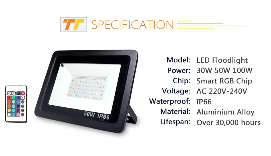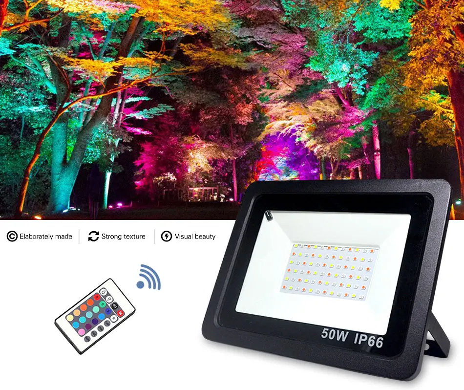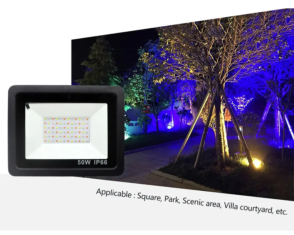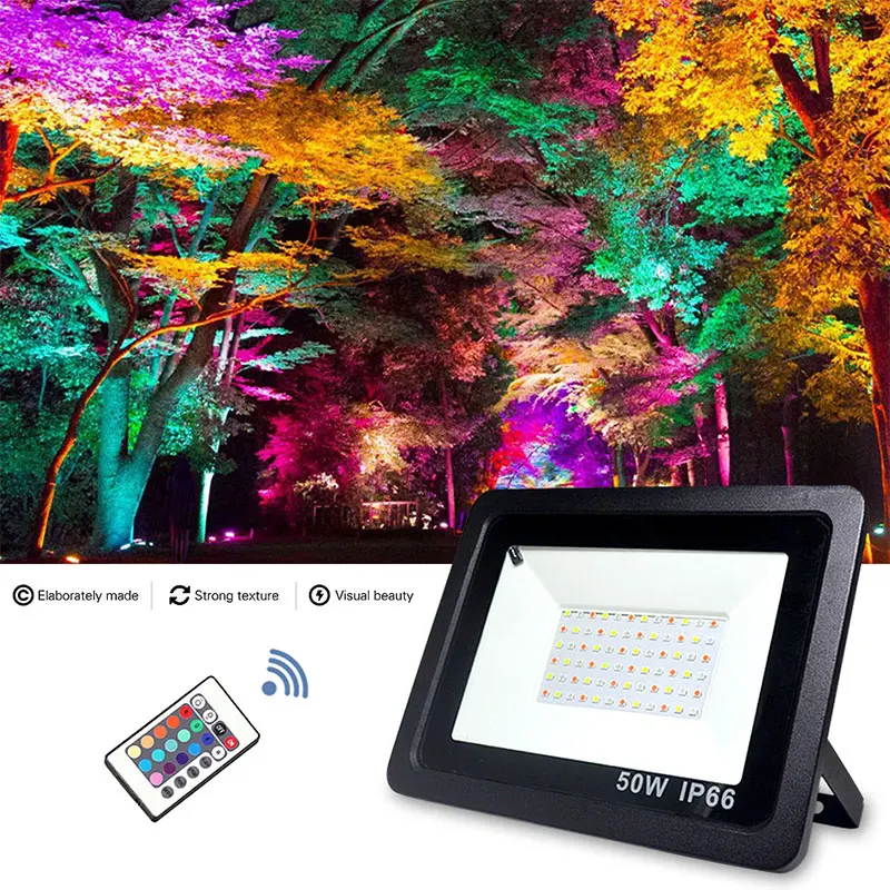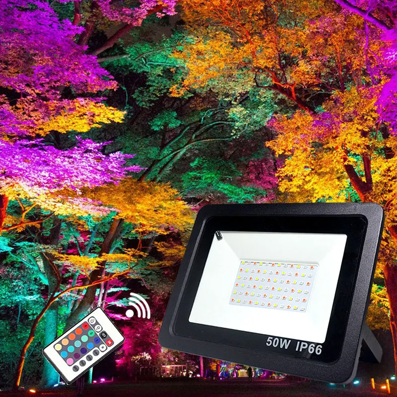 RGB LED прожектор водонепроницаемый 100 Вт 50 Вт 220 в 230 В красочный пульт дистанционного управления наружный настенный светильник садовый проекторОписание продукта: