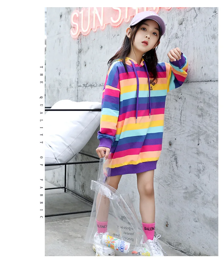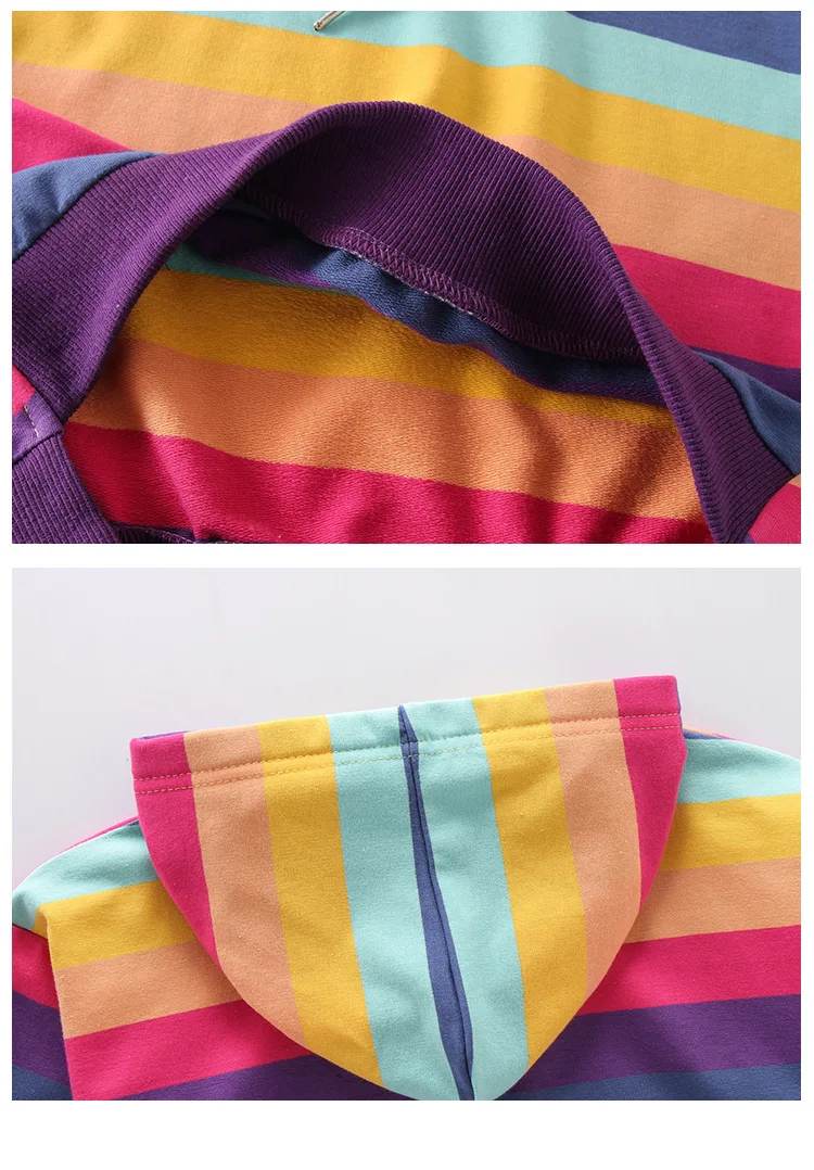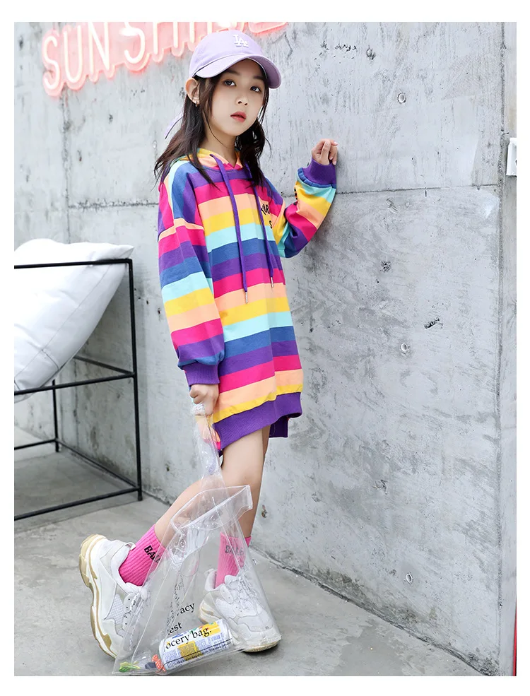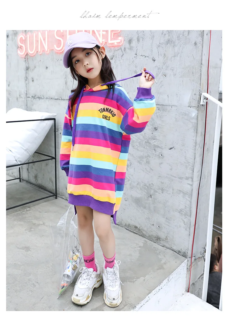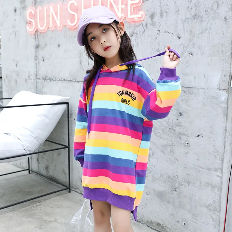 Детская толстовка для подростков; Коллекция 2022 года; Сезон весна; Толстовка в радужную полоску; Повседневная Толстовка для девочек; Топы для детей 12 лет; Детская одежда