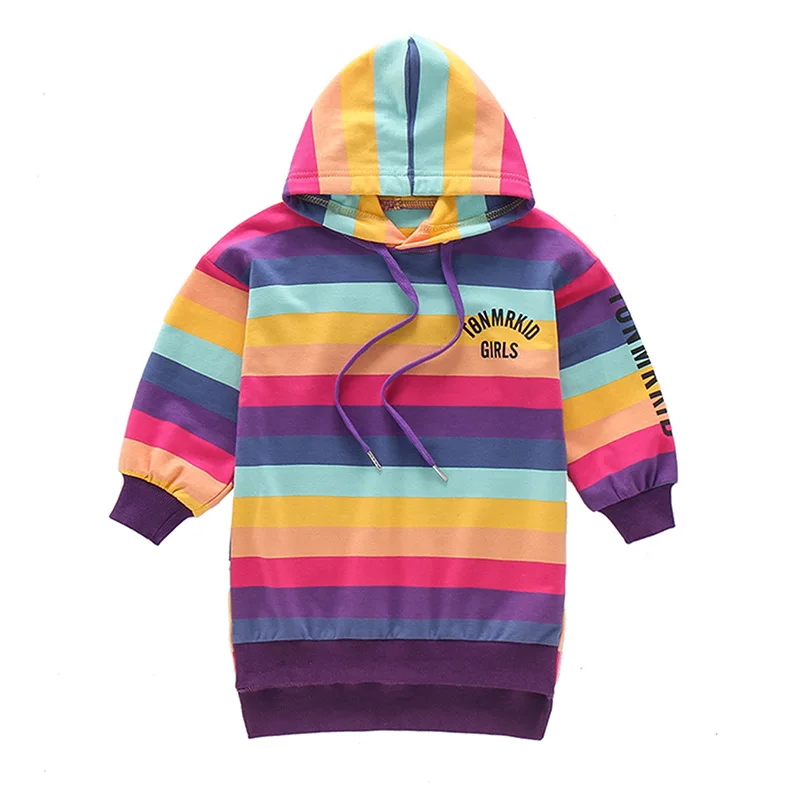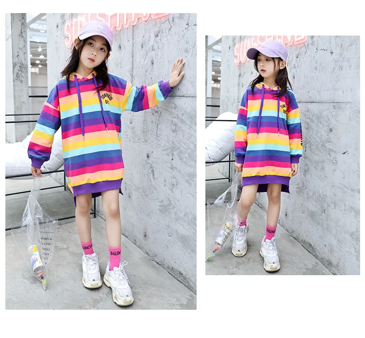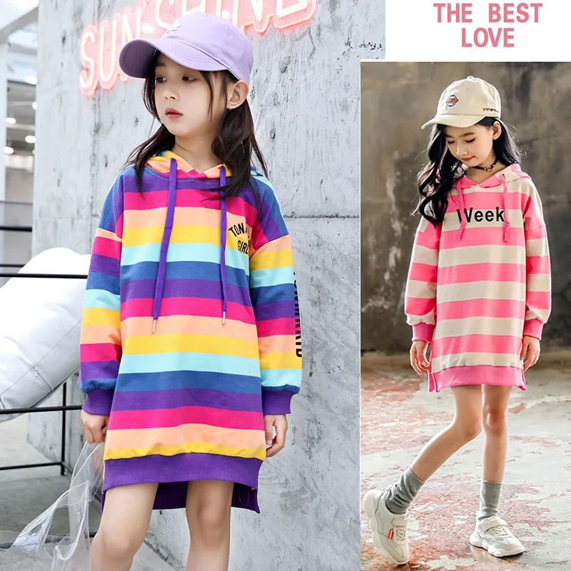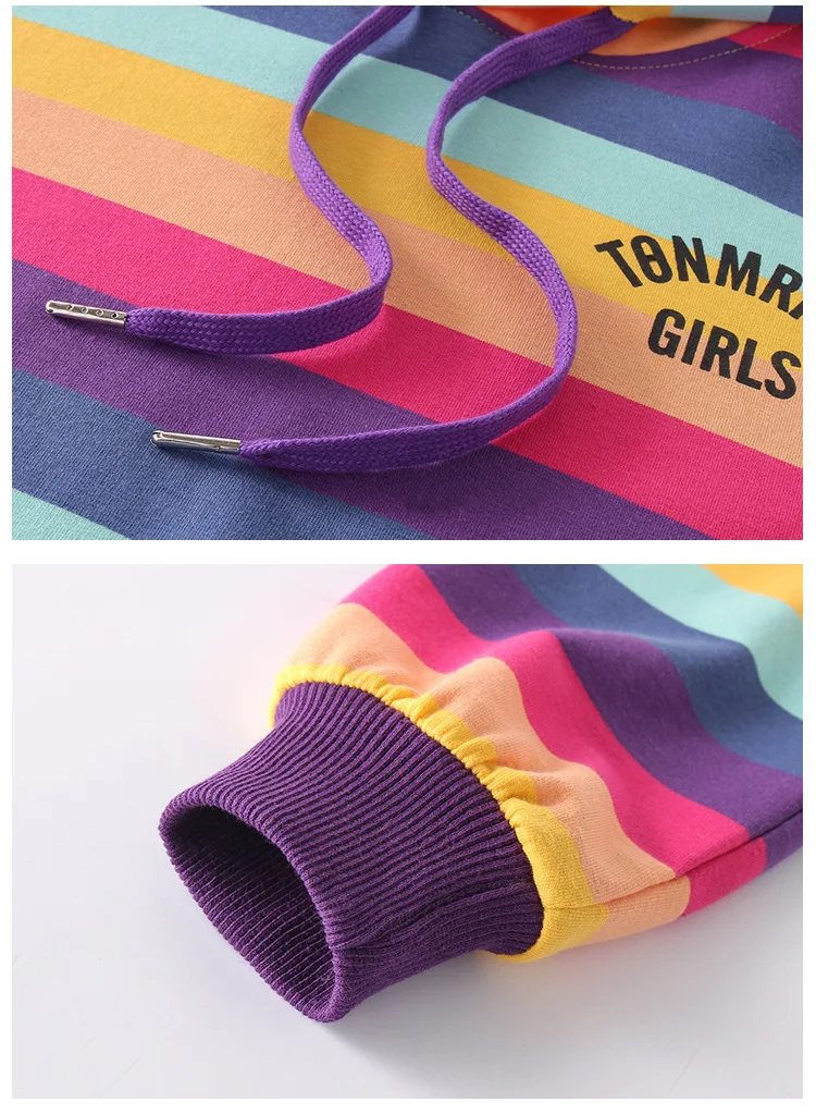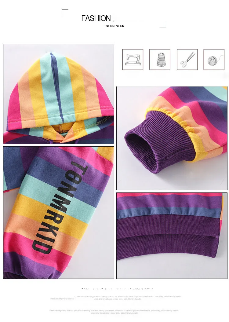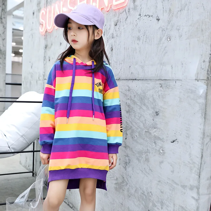 Детская толстовка для подростков; Коллекция 2022 года; Сезон весна; Толстовка в радужную полоску; Повседневная Толстовка для девочек; Топы для детей 12 лет; Детская одежда