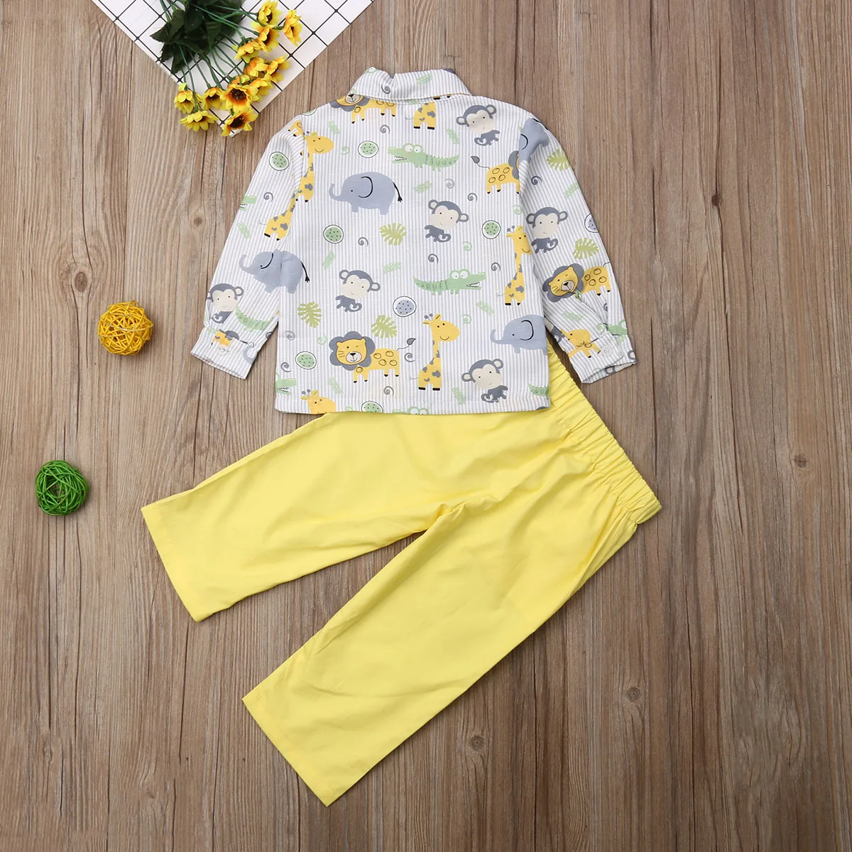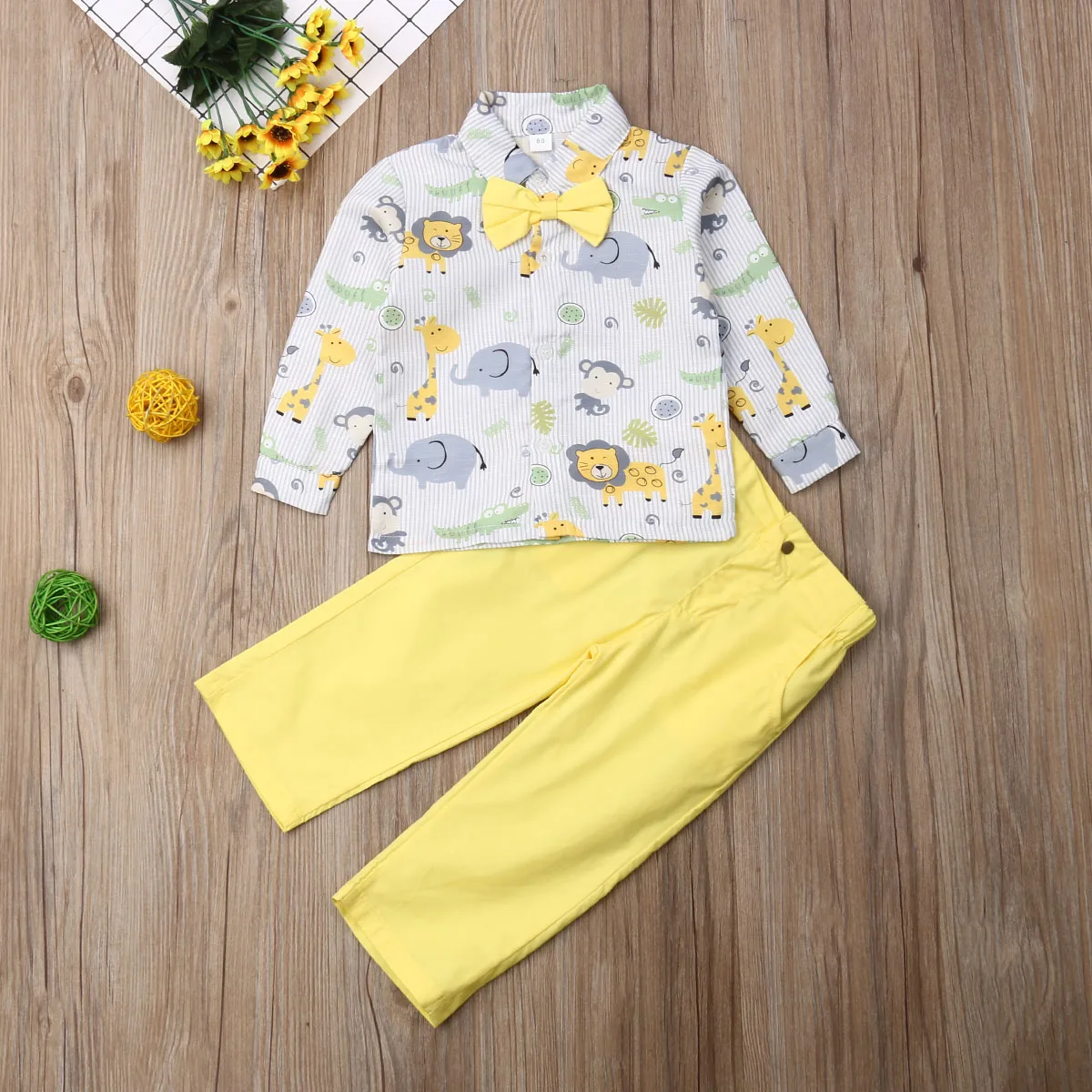 Джентльменские комплекты одежды для маленьких детей и мальчиков, рубашка с мультяшным принтом, шорты, брюки