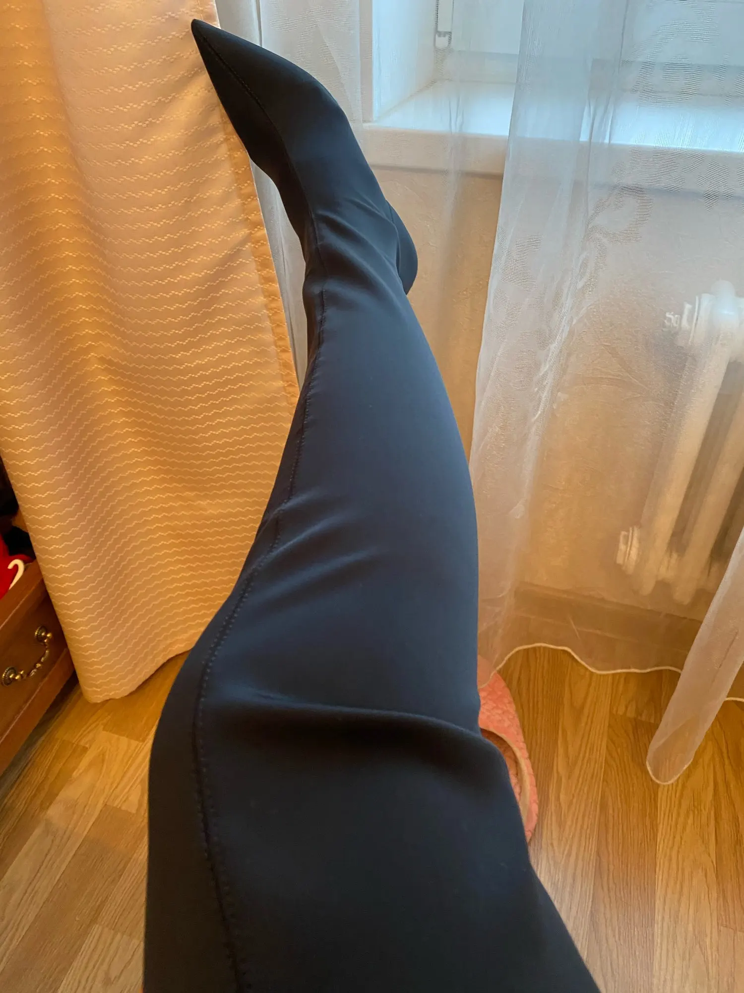 Сапоги неплохие , так для образа смотрятся эффектно , каблук не большой см 7-8 и не совсем устойчивый но при носке комфортно , долго сомневалась с размером в итоге все подошло на мой 37 немного в щиколотки правда свободно , ну это не раздражает были бы меньше пережимали бы ляжки и было бы совсем не очень ! А так советую пришли за 2 недели до Екатеринбурга