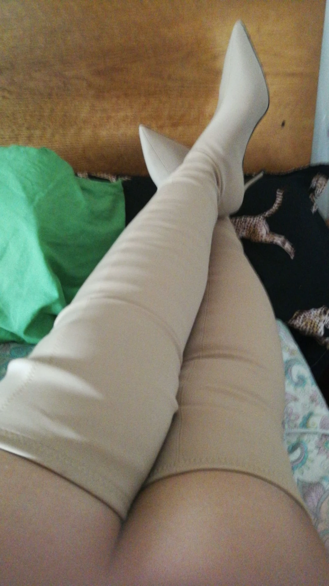 Очень долго думала брать ли...взяла, при распаковке стоит сильный запах клея!Склеено не аккуратно, стыки накладываются. Брала размер 9 по стельке 25 см, хотя у меня 26 см по стельке. Думала будут выше, на мой рост 170 см, они немного выше колена