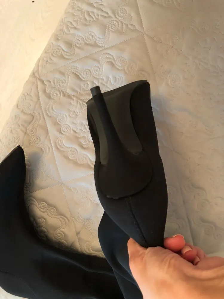 По отзывам сапоги хорошие.Но мне не повезло.У меня ступня 23,5см,взяла(5),что значит 36.Они больше на 3 см,ткань вокруг каблуков присборена,очень видно.Каблуки посаженны по разному(один нормально,другой ближе к пальцам,на вид буд то каблук один нормальный,а другой вперёд уехал.Клеем просто измазаны все сапоги.Одна нога при ходьбе уходит вбок(видимо из за каблука,Самое неприятное,что попросила вернуть по бесплатной доставке,а продавец начал юлить и в споре предоставил не тот адрес.(Москва)Служба алиэкспресс не может найти логистики этого адреса.И резко перестал отвечать на вопросы.