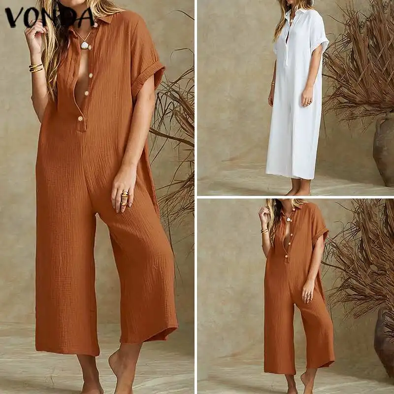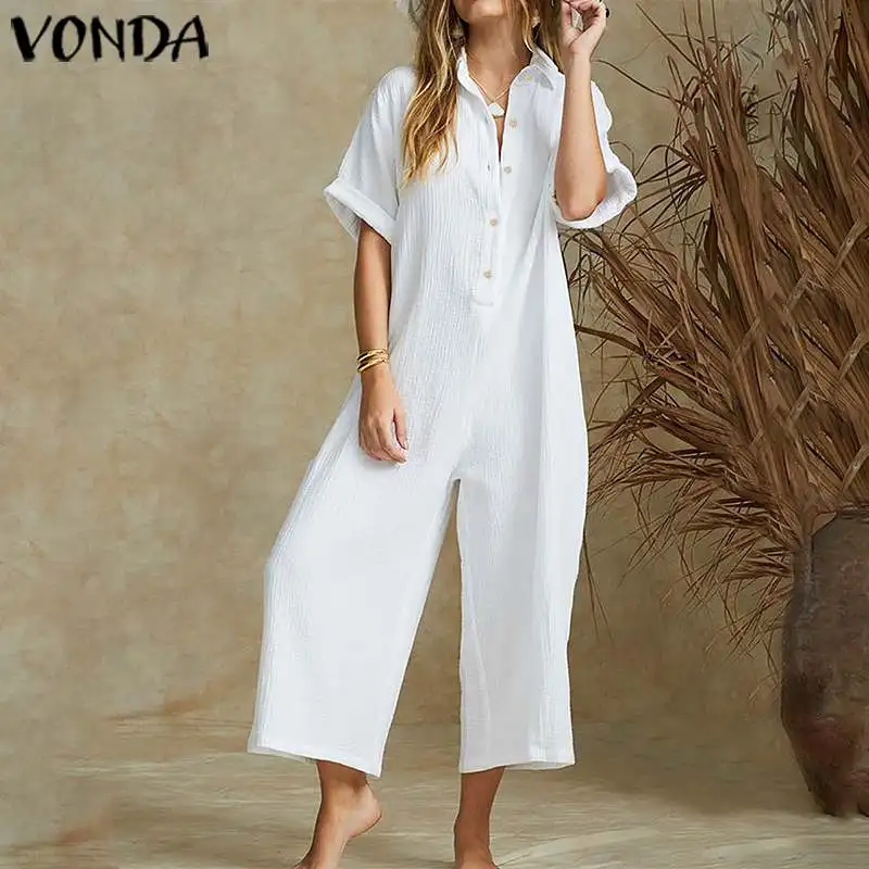 Комбинезон VONDA женский винтажный, повседневный элегантный пляжный костюм с коротким рукавом, с широкими штанинами, пикантный, лето 2021