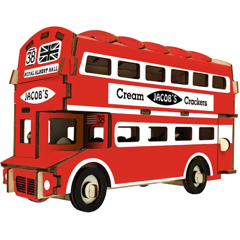 Деревянный 3d трехмерный пазл AK47 для мальчиков, Обучающие игрушки, детская Сборная модель автомобиля, двухэтажный автобус