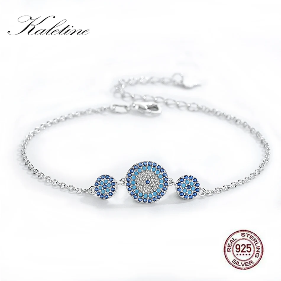 KALETINE женский браслет со сглаза из настоящего серебра 925 пробы, мужские ювелирные изделия, роскошные круглые голубые глаза, CZ три камня, Теннисный браслет 100% Новые Фирменные и высокого качества