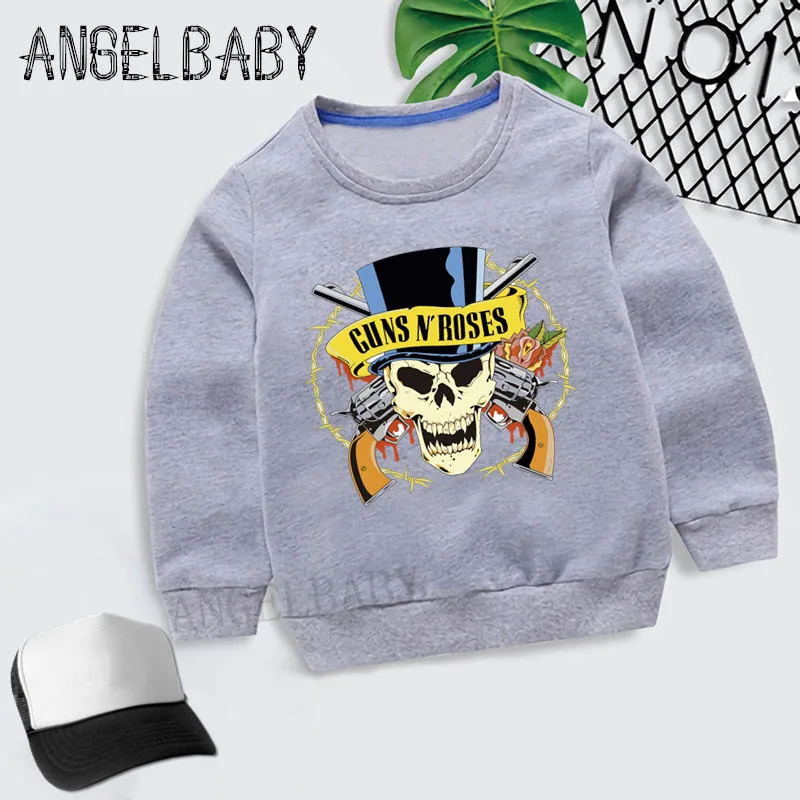 Толстовка для мальчиков и девочек, детская толстовка с принтом рок-группы Gun N Roses, детские осенние Топы, Детская Хлопковая одежда, KYT5196