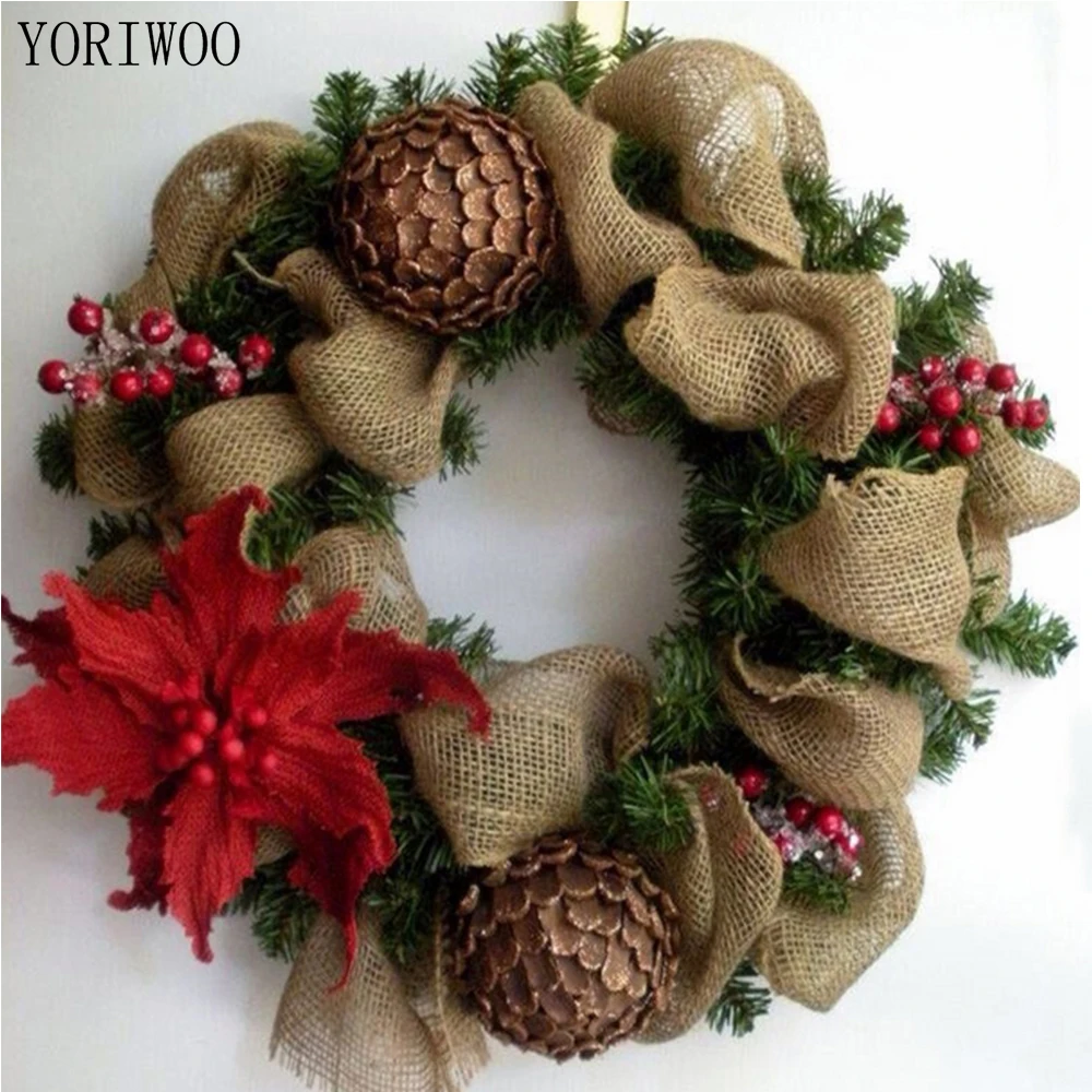 YORIWOO, 2 м, джутовая лента, кружево, мешковина в рулоне, украшения для рождественской елки, подарки, Рождественское украшение, рождественские украшения для дома 2019
