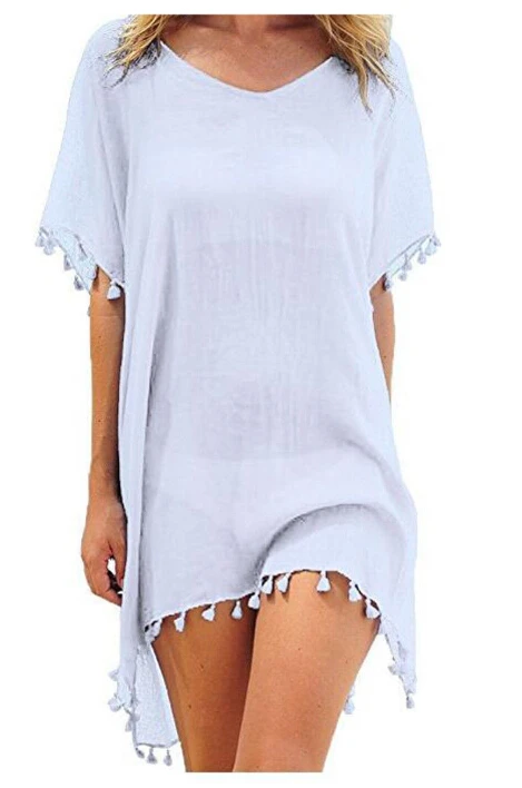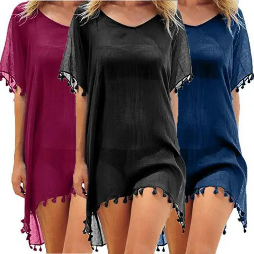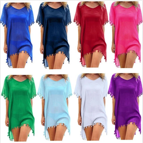 Женское винтажное пляжное платье Meihuida, однотонная сетчатая накидка, пляжная одежда, женский купальник с кисточками, шифоновая накидка с коротким рукавом для купания