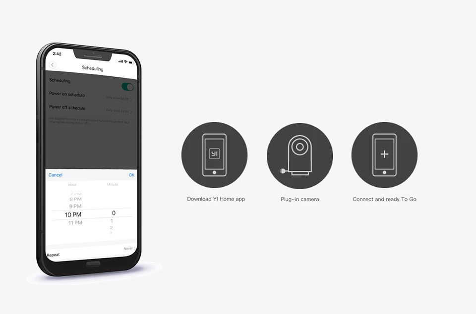 Дополнительные больше или 24/7 CVR подписки доступны для покупки через приложение YI Home.