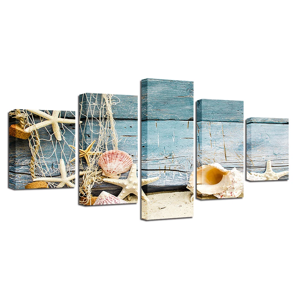 Картина на холсте, морская раковина, 5 панелей