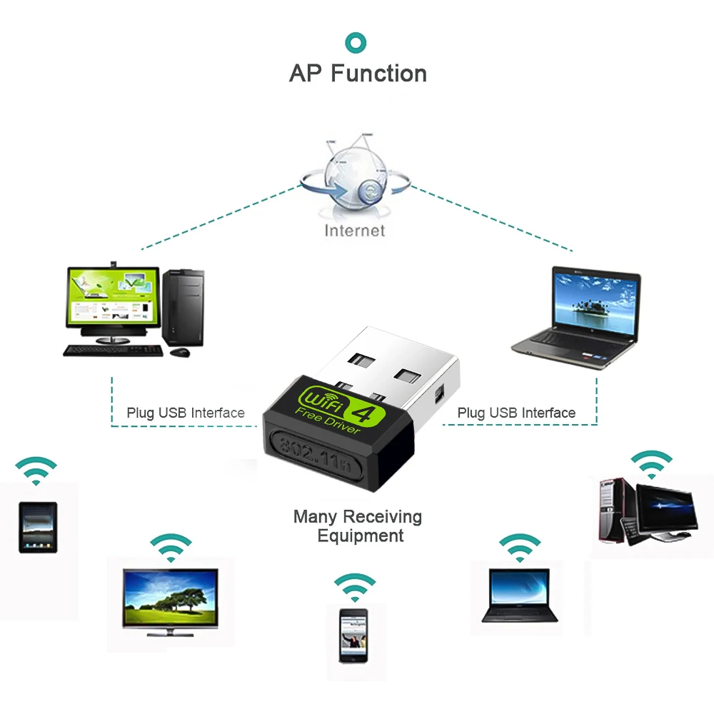 Мини USB WiFi адаптер Бесплатный драйвер 150 Мбитс Wi-Fi адаптер дл...