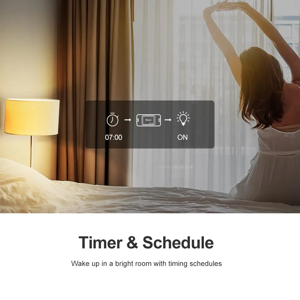 Просто нажмите одно приложение eWeLink, чтобы включить светильник в любое время и в любом месте. Освещенный дом ожидает вашего прибытия.