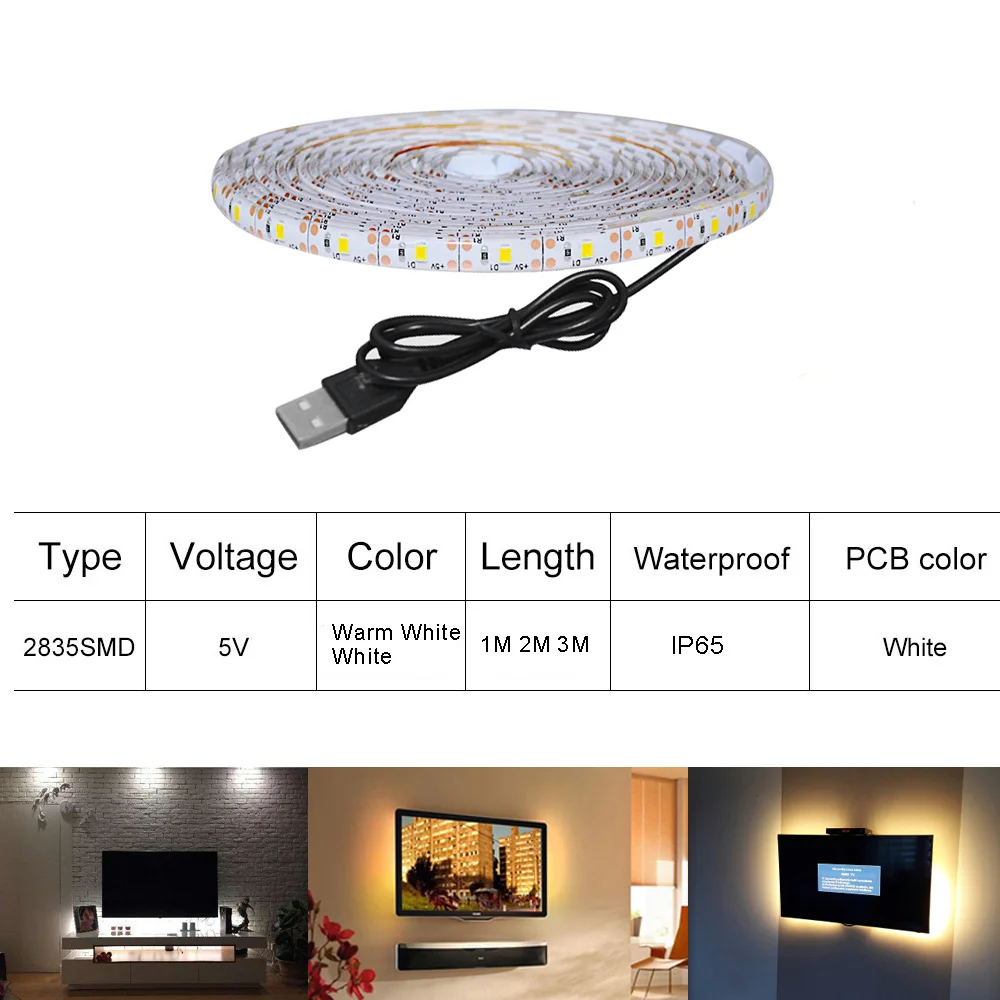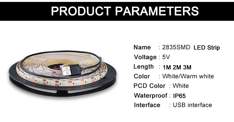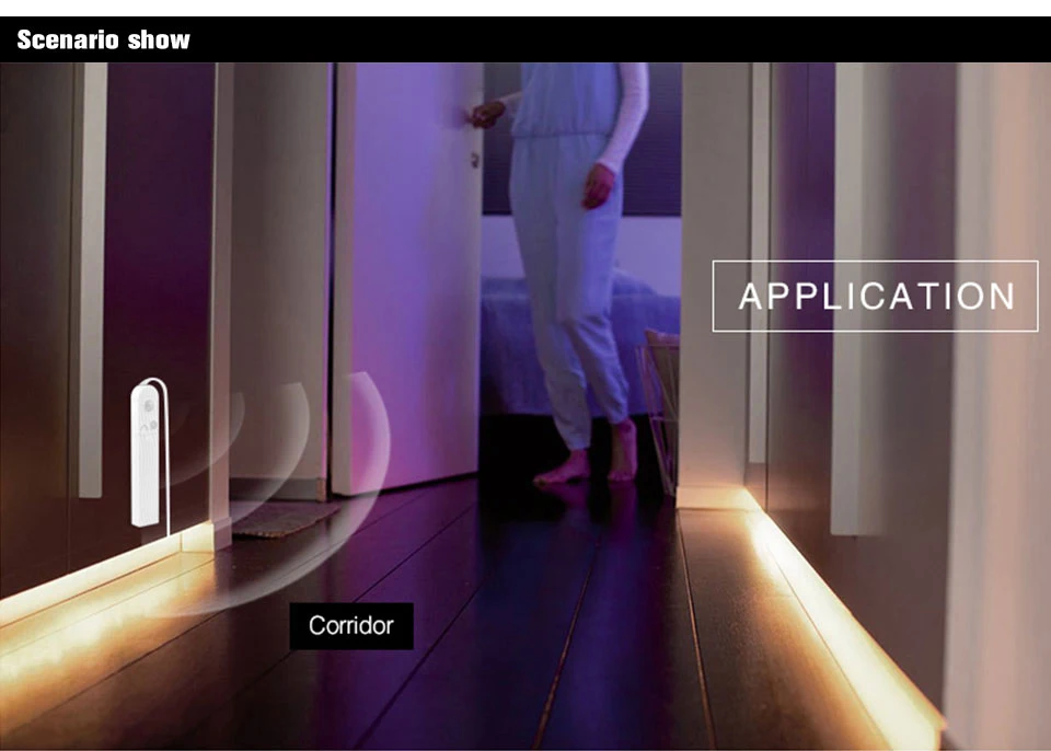 Светодиодная лента с датчиком движения характеристики:Тип: Светодиодная лента 5 в 2835 с датчиком PIRСветильник Цвет: белый/теплый белыйРасстояние срабатывания: 2 м-4 мВремя задержки: 15 с-5 мин (регулируется)Управление светильник: 2 режима.Режим 1: весь деньРежим 2: ночьДлина светодиодной ленты: 1 м 2 м 3 мКоличество светодиодов: около 60 светодиодов/мКласс водонепроницаемости: IP65 водонепроницаемыйБатарея: 4XAAA батарея (батарея не входит в комплект)Применение:Коридор, спальня, гостиная, лестница, кухня, шкаф, прихожаяРежимы работы: "ON" и "PIR"Когда вы нажимаете кнопку, красный светильник включается, это означает, что переключатель будет работать все время, когда вы снова нажимаете кнопку, красный светильник выключится, переключатель перейдет в режим управления датчиком. Спецификация светодиодной ленты USB:Тип: светодиодный usb-кабельНапряжение: 5 В постоянного тока (Питание от USB)Водонепроницаемый: IP65 водонепроницаемыйТип светодиодный: SMD2835Длина ленты: 1 м 2 м 3 мЦвет излучения: холодный белый/теплый белыйУгол луча: 120 градусовРабочая температура. : -25 ~ 60 градусов