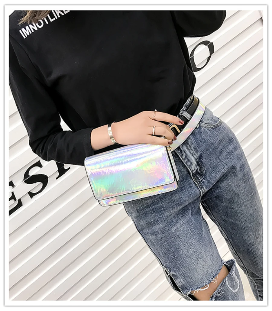 Женская поясная сумка-кошелек, блестящая поясная сумка из искусственной кожи для путешествий, летняя лазерная сумка-Кроссбоди с голограммой, поясная сумка