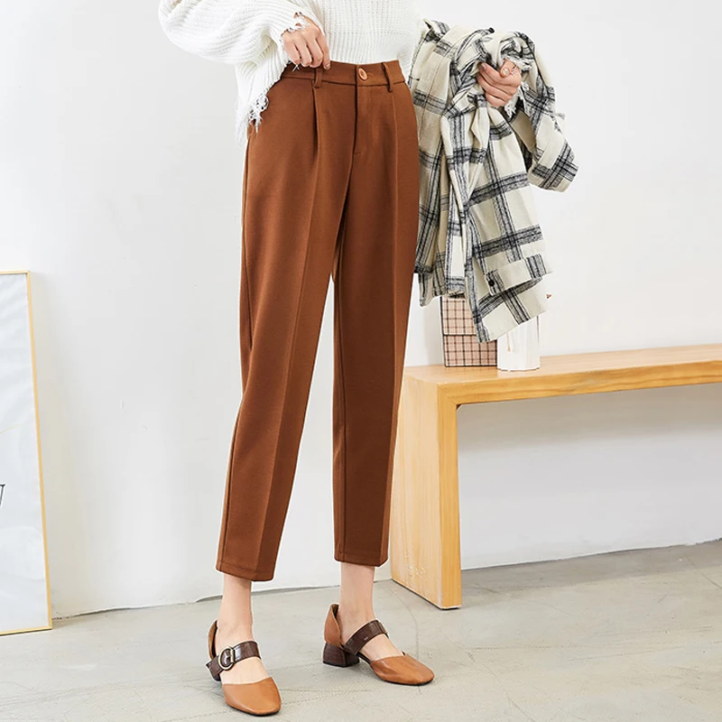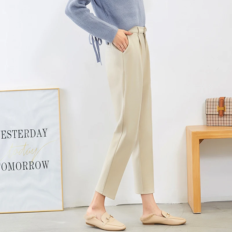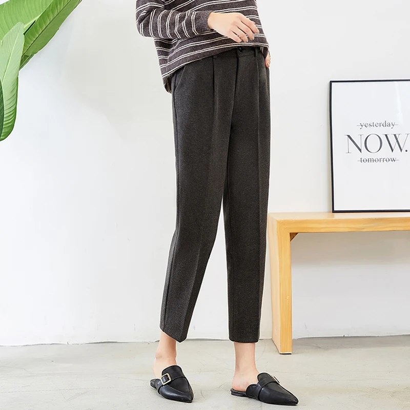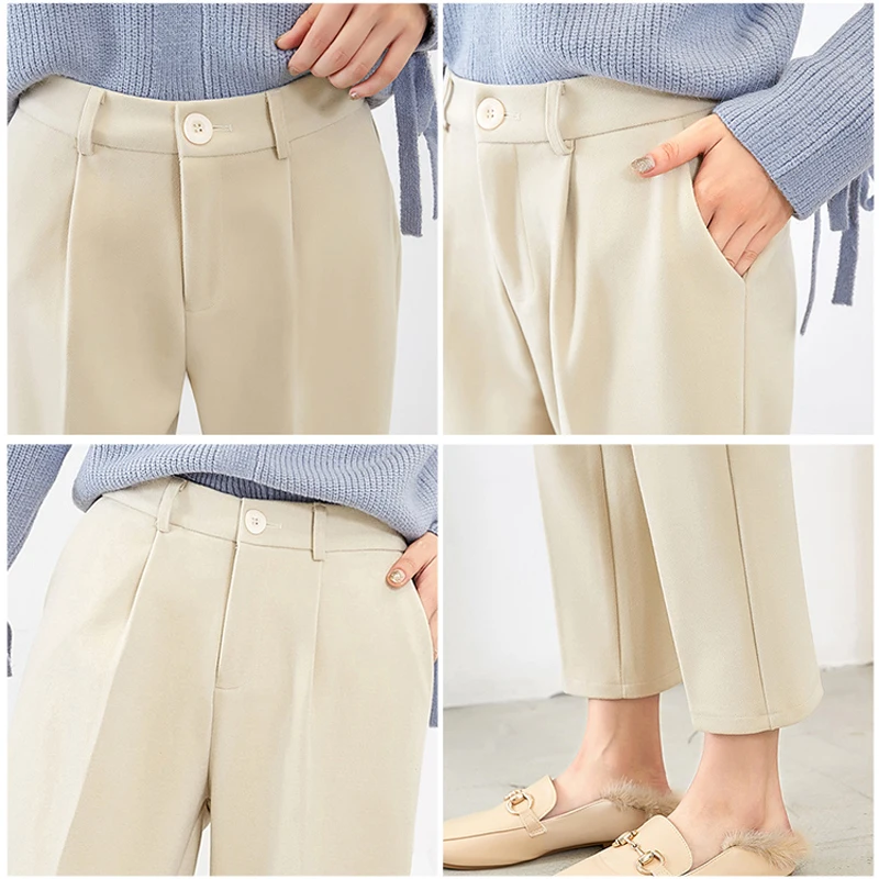 Повседневные плотные брюки-карандаш для женщин, большие размеры, шерсть, Женский Рабочий костюм, брюки 2019, Осень-зима, высокая талия, женские брюки-Капри