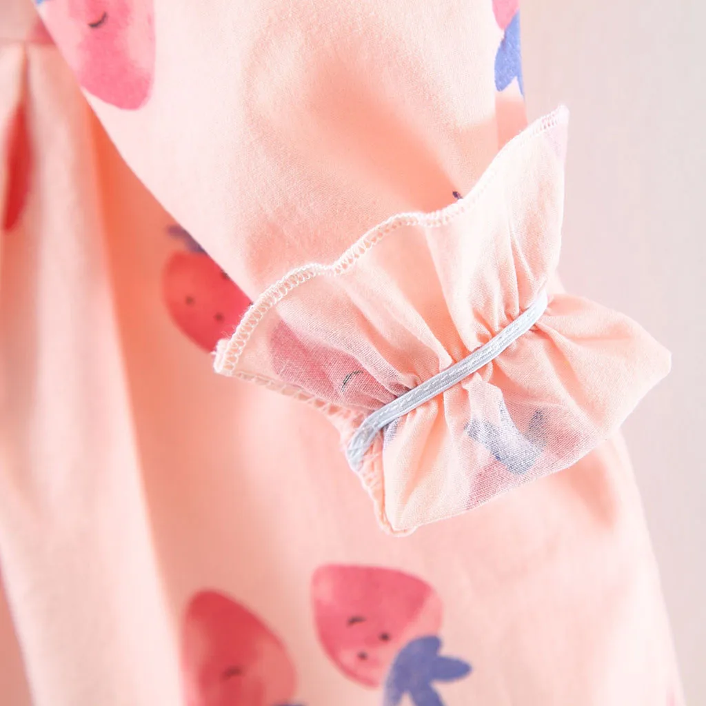 Номер моделиBaby Kids Girls Ruffles Doll Collar Strawberry Dresses Casual Clothes