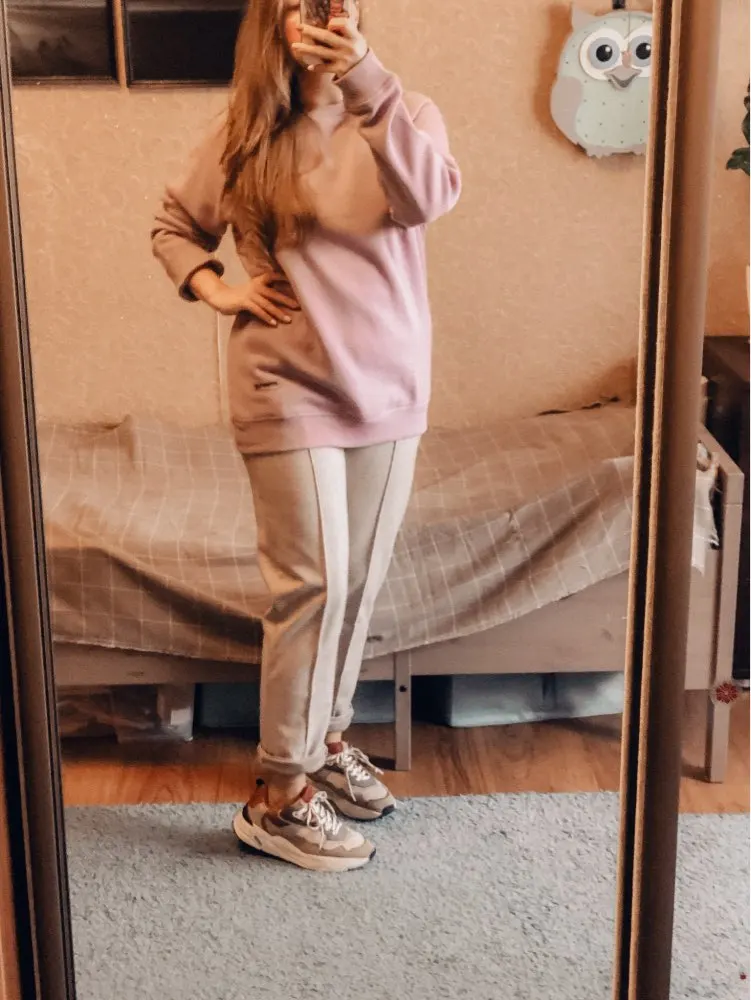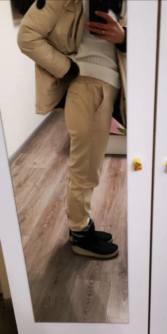 Штаны хорошие, сшито отлично, за счёт резинки ничего не давит, очень тёплые. Размер xl на мой 46рус отлично, не берите меньше, берите по размерной сетке!! С длиной конечно беда))) на мой рост 160см они как бы длинные, но длина не актуальная, на третьем фото видно))) с кроссовками выглядит устарело, нужно подворачивать или подшивать обязательно (4-5 фото). Но вообще понравились, на зиму супер вариан, в масс маркете таких не видела, да и за такую цену! Возьму ещё цепные и маме тоже