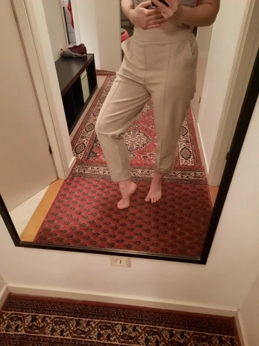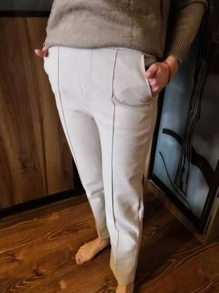 Симпатичные светлые брюки, соответствуют описанию. Ткань мягкая, приятная к телу, достаточно плотная, без неприятного запаха. Продавец отправил быстро, до Новосибирска дошли чуть больше чем за месяц. Из минусов, на одной из брючин была не прошита строчка по шву. Уж не знаю как это осталось незамеченным. Был открыт спор и продавец на следующий день компенсировал затраты на ремонт в ателье. В целом, брюками довольна, спасибо продавцу за честность и быструю коммуникацию.
