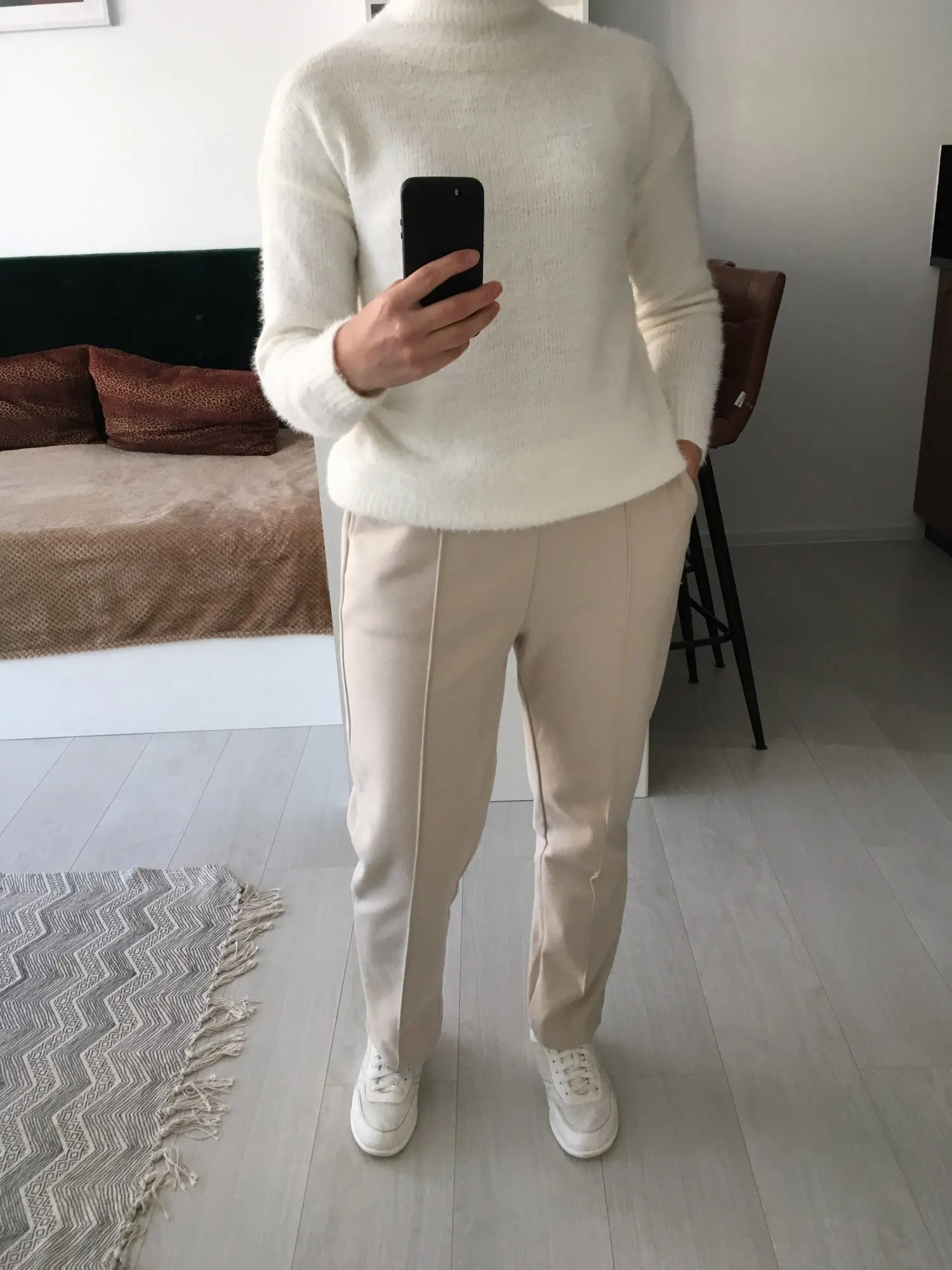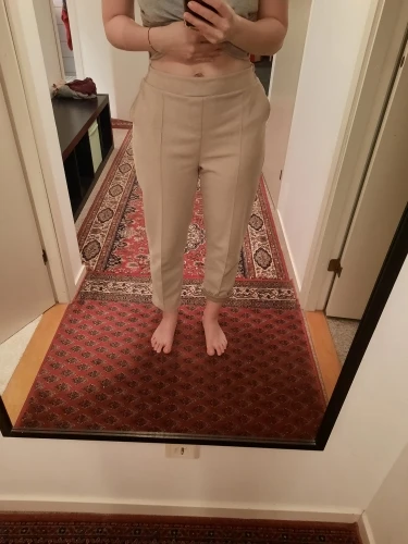 Я чрезвычайно довольна покупкой этих брюк! Приятная ткань, классный силуэт. Они не спортивные и не офисные, а скорее повседневные. Выбранный размер на бедра 94 см и немного животик, рост 162 см просто отлично. По длине можно немного отпустить еще. Очень довольна и рекомендую!