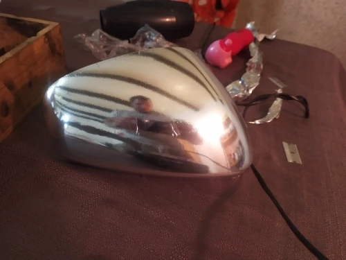 Не профессиональная виниловая техника... Эффект кромки выглядит хорошо, винил довольно растягивается, так как когда вы снимаете слой защиты, его еще легче наносить... Использование теплового пистолета не всегда является хорошей идеей, потому что оно будет производить больше морщин... Но это зависит от формы... Мой предмет был довольно сложный, это задний свет от винтажной vespa... После нескольких испытаний становится лучше.